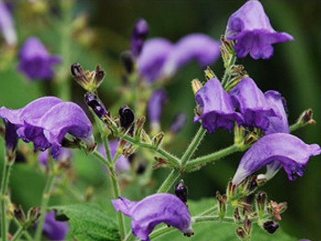 Strobilanthus atropurpureus - Staude, die einen größeren Horst aufrechter Stängel bildet und eine Höhe von etwa 90 cm erreicht. Die Blätter sind fast kahl, sitzend und elliptisch lang. Eiförmig bis eiförmig-lanzettlich im Umriss. Die Blüten sind blau bis dunkelblau und in Ähren angeordnet. Nach der Blüte bildet sich eine Samenkapsel mit Samen. Blüht im Zeitraum Juni bis September. Eignet sich für gemischte Staudenbeete.
