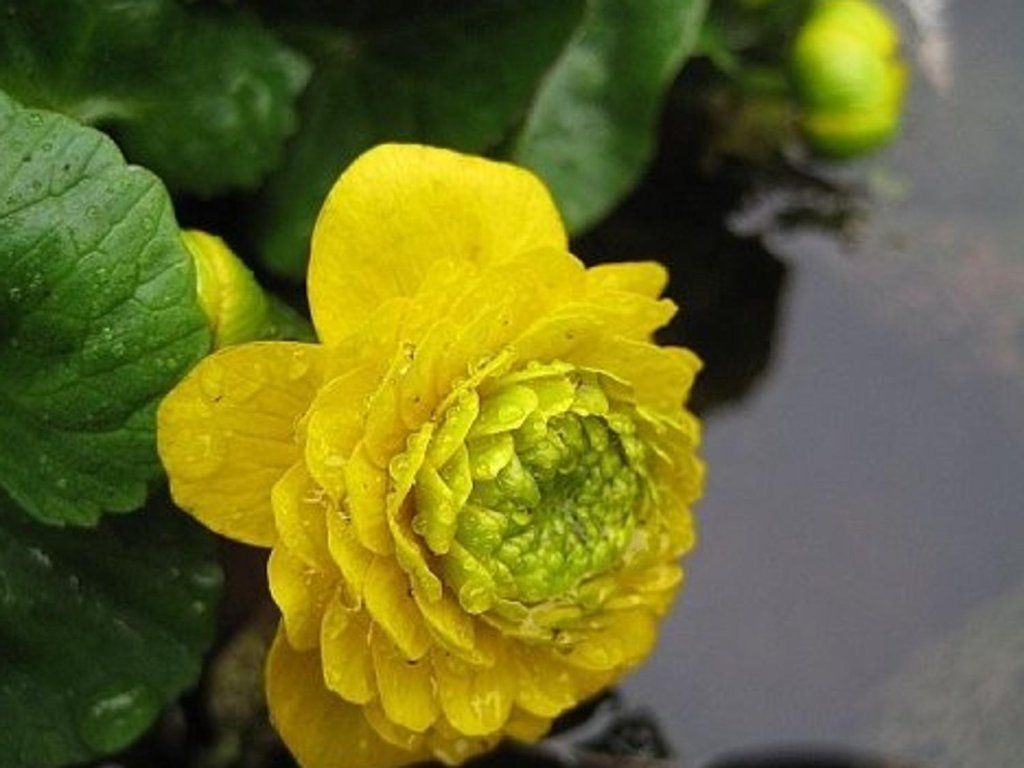 Sumpfdotterblume 'Plena' - eine gefüllte Sorte mit aufrechten oder kriechenden Stängeln. Er erreicht eine Höhe von 50 cm. Von April bis Juni erscheinen leuchtend gelbe Blüten. Die Blätter sind herzförmig, glänzend und dunkelgrün gefärbt. Die Pflanze eignet sich zum Pflanzen an Teichen und Wasserläufen oder an feuchten bis sumpfigen Standorten. Sie ist leicht giftig und frostbeständig.