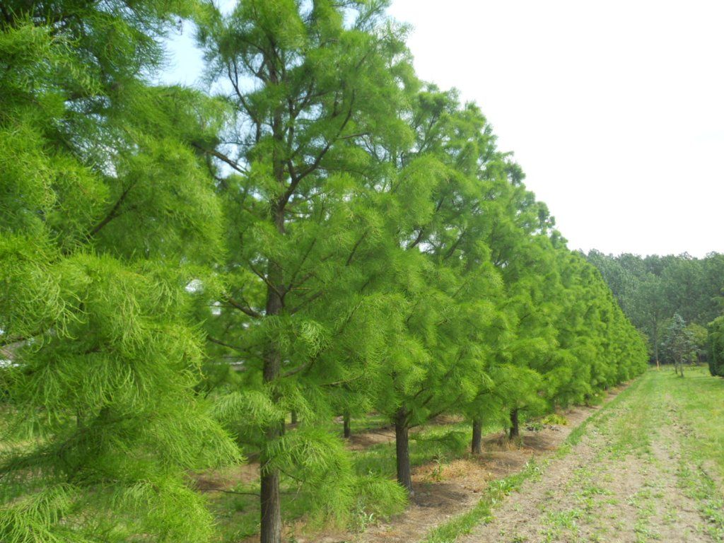 Die Sumpfzypresse - ein imposanter Baum, der eine Höhe von etwa 30 bis 45 Metern erreicht. Junge Bäume haben eine kegelförmige oder pyramidenförmige Krone, die sich später zu einer breiteren und kräftigeren Form auswächst. Seine Krone ist oft ausladend und breit. Das Wachstum dieses Baumes ist mittelschnell, kann aber innerhalb weniger Jahrzehnte beträchtliche Ausmaße erreichen. Die Nadeln der Sumpfzypresse haben im Laufe des Jahres wechselnde Farben, was eine seiner markanten Eigenschaften ist. Im Frühling treiben sie in einem schönen erbsengrünen Farbton aus. Im Sommer sind die Nadeln hellgrün bis gelblich, typisch für die meiste Zeit des Jahres. Im Herbst beginnen sich diese Nadeln allmählich in wunderschöne Orange- bis Bronzetöne zu verwandeln, bevor sie abfallen. Diese Farbtransformation schafft einen erstaunlichen Kontrast in der Landschaft, wenn die Baumkrone warme und leuchtende Farbtöne annimmt, was ein bekanntes und sehr ästhetisches Merkmal dieses Baumes darstellt. Diese Herbstfarben der Nadeln sind einer der Gründe, warum die Sumpfzypresse ein sehr geschätzter Baum in Pflanzungen und Gärten ist. Die Sumpfzypresse hat mehrere bemerkenswerte Eigenschaften, darunter ihre Fähigkeit, verschmutzte Umgebungen zu tolerieren, wodurch sie zu einem willkommenen Baum in städtischen Gebieten wird. Sie ist auch bekannt für ihre Fähigkeit, in Gebieten mit periodischen Überschwemmungen oder Staunässe zu wachsen. Sie wird hauptsächlich als Zierpflanze verwendet und zeichnet sich besonders durch ihre Frische und Leichtigkeit in der Gartengestaltung aus. Sie kann auch dunklere Umgebungen angenehm und unaufdringlich beleben, besonders im Herbst, wenn sie beeindruckende Kontraste zu anderen Nadelbäumen vor dunklem Hintergrund bildet. Sie passt hervorragend zu Uferbepflanzungen, anderen Nadel- und Laubgehölzen, die schlanke Formen haben.