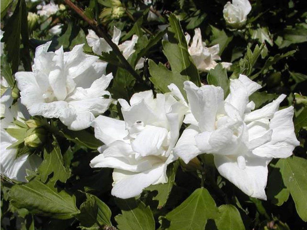 Pflege: Es wird ein sonniger, warmer und windgeschützter Standort empfohlen, z. B. die Süd- oder Südwestseite des Hauses oder geschützte Höfe. Der Boden sollte lehmig bis lehmig-sandig, mäßig feucht, gut durchlässig und humusreich sein. Hibiskus verträgt einen pH-Wert von leicht sauer bis leicht alkalisch, einschließlich Böden mit höherem Kalziumgehalt. Beim Pflanzen werden oft Kompost oder gut verrotteter Mist hinzugefügt, bei schweren Böden hilft das Einmischen von Kies oder grobem Sand zur Verbesserung des Wasserabflusses. Containerpflanzen werden von März bis Oktober gepflanzt, in kälteren Regionen wird der Frühjahrstermin bevorzugt, damit der Strauch vor dem Winter Wurzeln schlagen kann. Für Hecken werden in der Regel Abstände von 0,8-1,2 m gewählt, als Solitär benötigt er etwa 2-3 m Platz. Die Bewässerung ist im ersten Jahr nach der Pflanzung und während längerer Trockenperioden am wichtigsten, zwischen den einzelnen Bewässerungen sollte der Boden leicht abtrocknen. Die jährliche Frühlingsdüngung mit Kompost oder Dünger für blühende Sträucher fördert die Bildung von Blütenknospen. Der Rückschnitt erfolgt im Spätwinter oder frühen Frühjahr, wobei schwache, gefrorene oder sich kreuzende Äste entfernt werden und die Vorjahrestriebe um ein Drittel bis zur Hälfte gekürzt werden können. Junge Pflanzen profitieren von einer Wintermulchschicht am Fuß des Strauchs. Der Hibiskus ist in der Regel widerstandsfähig; bei langer Trockenheit können Blattläuse oder Spinnmilben auftreten, die die jüngsten Triebe schwächen. An einem gut gewählten Standort handelt es sich um ein langlebiges, pflegeleichtes Gehölz mit garantiertem Sommerflor.