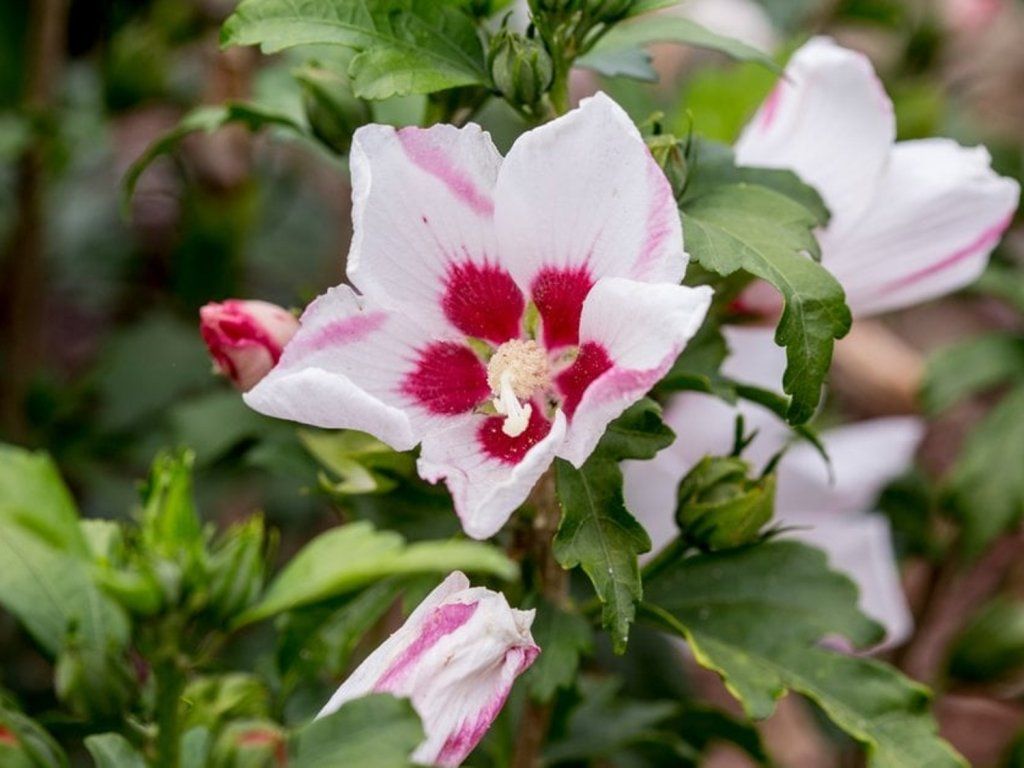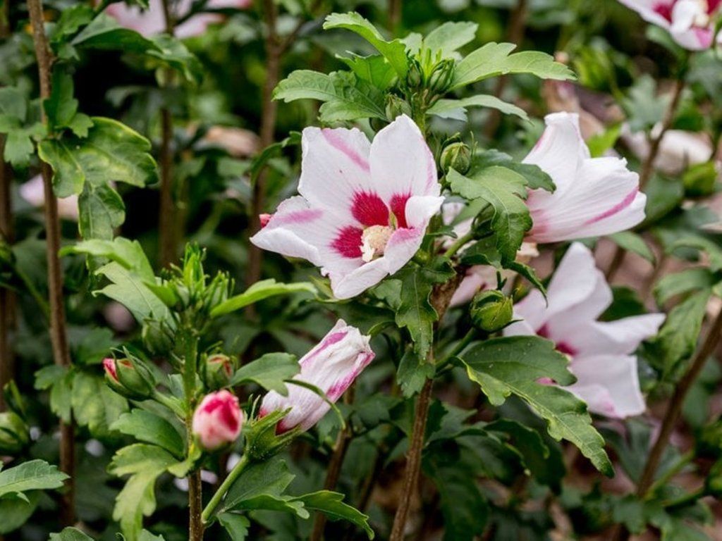 Hibiskus syriacus, auch bekannt als Roseneibisch, ist ein laubabwerfender Strauch, der zur Familie der Malvengewächse gehört. Diese Hibiskusart stammt aus Ostasien. Dies kann natürlich je nach spezifischem Kultivar und den Wachstumsbedingungen variieren. Dies kann natürlich je nach spezifischem Kultivar und Wachstumsbedingungen variieren. Die Blätter sind wechselständig, tiefgrün und herz- oder ovalförmig mit gezackten Rändern. Er hat schöne Blüten, die wunderbar groß sind und verschiedene Farben haben können – weiß, rosa, blau oder violett. Diese Blüten haben das charakteristische Aussehen eines röhrenförmigen Zentrums mit hervorstehenden Staubblättern und Blütenblättern ringsherum. Sie erscheinen in den Sommermonaten, von Juli bis September, je nach spezifischer Sorte und klimatischen Bedingungen. Diese Pflanze eignet sich gut als Solitärgehölz oder in Hecken. Er eignet sich gut als Solitärpflanze oder in Hecken. Hibiscus syriacus wird normalerweise im Frühjahr geschnitten, idealerweise vor Beginn des aktiven Wachstums, což může být koncem března nebo začátkem dubna. Er ist ein großartiges Beispiel für Bescheidenheit und zeichnet sich durch seine Widerstandsfähigkeit unter allen Bedingungen aus, eine ideale Wahl für alle sonnigen Standorte.