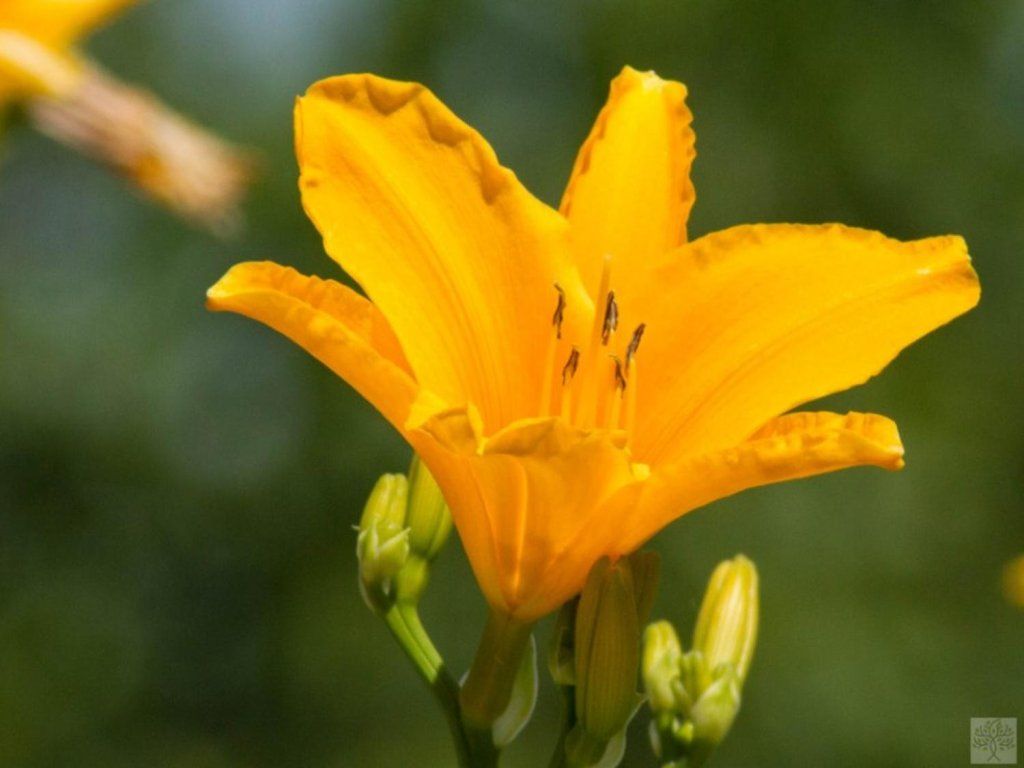 Taglilie 'Aten' – eine bezaubernde Blume, die mit ihren leuchtend orangefarbenen Blüten die Aufmerksamkeit auf sich zieht. Eine langlebige Staude aus der Familie der Affodillgewächse, deren Elternarten hauptsächlich aus Ostasien stammen. Die Sorte 'Aten' gehört zu den Gartensorten, die für ihren festen Horst und ihre lange Sommerblüte gezüchtet werden. Aus den bodennahen Fächern wachsen schmale, bogenförmige, mittelgrüne Blätter, über denen etwa 70–90 cm hohe Blütenstiele stehen. Auf den Stielen öffnen sich von Juni bis August nach und nach große, weit geöffnete Blüten mit einem Durchmesser von etwa 10–12 cm, goldgelb bis orange-gelb, zart duftend. Eine einzelne Blüte hält normalerweise einen Tag, aber dank der vielen Knospen wirkt der Horst durchgehend blühend, und im warmen Spätsommer kann es zu einer schwächeren Wiederblüte kommen. Die Blüten liefern Pollen und Nektar für Insekten und eignen sich für die Vase, da sich am angeschnittenen Stiel weitere Knospen öffnen. Bei einigen Taglilien sind die Blüten essbar und werden als Dekoration verwendet. Es ist jedoch ratsam, nur Pflanzen ohne chemische Behandlung zu verwenden. Die Pflanzen sind auch für Katzen riskant und können bei Verzehr giftig sein. In Kompositionen funktioniert sie gut mit Ziergräsern, Schafgarben, Salbei, Sonnenhut oder in einem Streifen entlang von Wegen, wo der regelmäßige Fächer aus Blättern zur Geltung kommt.
