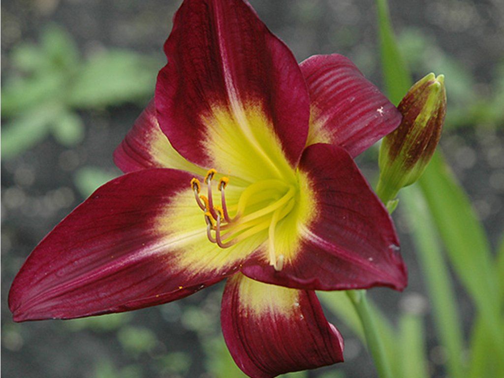 Taglilie 'Night Beacon' - breichblühende Sorte der anspruchslosen Taglilie, die in kompakten Büscheln wächst und eine Höhe von etwa 60 cm erreicht. 'Schönheitsgöttin' an einem sonnigen Tag, jede Blüte blüht nur einen Tag. Die Blätter wachsen in Horsten, sind schmal und grün. Am Blütenstiel erscheinen bald weinrote Blüten mit einem kontrastierenden gelben Fleck. Die Blütenblätter sind meist nach hinten gedreht. Sie blüht von Juni bis August. Sie eignet sich für Gruppenpflanzungen. Höhere Kultivare verwenden wir als Solitärpflanzen, kleinere dann für die Kultivierung in Gefäßen. Wir können sie mit Sonnenhut, Schafgarbe, Argentinischem Eisenkraut und Sibirischen Schwertlilien kombinieren. Sie finden ihren Platz als Ergänzung zu Wasserelementen. Sie sehen unwiderstehlich aus mit hohen Gräsern.