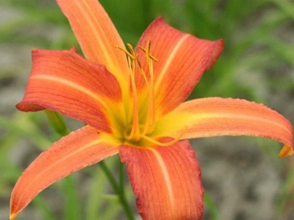 Taglilie 'Piquante' - eine attraktive Sorte mit auffälligen, leuchtend orangefarbenen Blüten, die zur Mitte hin in einen strahlend gelben Farbton übergehen und so einen feurigen, kontrastreichen Effekt erzeugen. Er erreicht eine Höhe von 80–100 cm und bildet dichte Horste dunkelgrüner, bogig überhängender Blätter, aus denen kräftige Blütenstiele wachsen. Einzelne Blüten halten nur einen Tag, doch die Pflanze bildet eine große Anzahl von Knospen, sodass die Blütezeit von Juni bis August andauert und einen langanhaltenden Farbeffekt bietet. Sie ist frostbeständig und pflegeleicht, daher sowohl für Anfänger als auch für erfahrene Gärtner geeignet. Er zeichnet sich in Gruppenpflanzungen mit anderen Stauden wie Sonnenhut, Schafgarbe, Argentinischem Eisenkraut, Sibirischer Schwertlilie, Fingerhut, Königskerze, Kettenveilchen oder Monarden aus. Höhere Exemplare können als Solitäre verwendet werden, während kleinere sich für Kübel eignen. Sie ergänzt auch hervorragend Wasserelemente und harmoniert mit hohen Ziergräsern, wodurch sie dem Garten während der gesamten Sommerperiode einen feurigen Farbakzent und Dynamik verleiht.