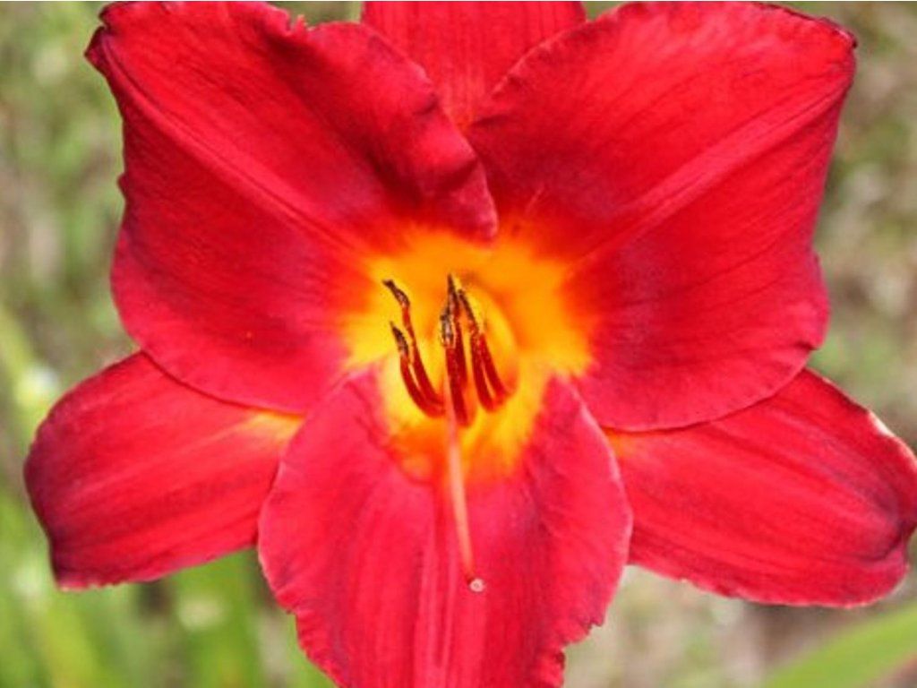 Taglilie 'Rahotep' - wächst auf eine Höhe von etwa 60-70 cm. Sie überwintert in ihren kräftigen, fleischigen Wurzeln. Sie blüht von Juli bis August. Die himbeerroten Blüten sind 13 cm groß und duften leicht. Feste, lilienartige Blüten haben eine tiefgelbe Kehle. Sie hat grüne, schmal geformte, lange Blätter, die in Büscheln wachsen und in wärmeren Regionen immergrün sind. In unseren Breiten stirbt im Winter der oberirdische Teil ab.
