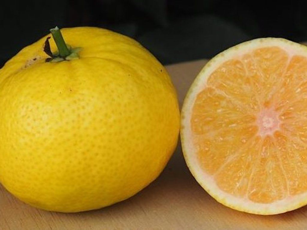 Tangelo 'Wekiwa' - eine interessante Sorte, die zu den Tangelos gehört, also Hybriden aus Mandarine und Grapefruit, und von Züchtern manchmal auch als Lavender Gem bezeichnet wird. Entstanden in den Vereinigten Staaten als Kreuzung aus Tangelo und Grapefruit, vereint sie die feine Süße von Mandarinen mit einem leichten Grapefruit-Hauch. In Töpfen bildet sie ausgewachsen einen mittelgroßen, kompakten Baum von etwa 1,5–2 m Höhe und etwa 1–1,5 m Breite, mit einer gut durchlichteten Krone und nur schwach bedornten Ästen. Die Blätter sind elliptisch bis lanzettlich, ledrig, tiefgrün, mit hervorgehobener Blattaderung und leicht gewelltem Rand, optisch den Orangenbäumen nahestehend. Im Frühling, meist von April bis Juni, blühen weiße, stark duftende und nektarreiche Blüten. Die Früchte sind mittelgroß bis groß, kugelförmig bis leicht abgeflacht, mit einer mitteldicken, oft leicht runzligen Schale, die sich gelb-orange bis orange verfärbt und manchmal an den Enden grünlich bleibt. Das Fruchtfleisch ist rosafarben-orange, sehr saftig, mit einer geringen Anzahl von Kernen. Der Geschmack ist überwiegend süß, mit einer leichten Säure und einem feinen Grapefruit-Ton, in voller Reife eher von mandarinenartigem Charakter. Die Früchte eignen sich zum direkten Verzehr, für Obstsalate, Desserts, Marmeladen und zum Pressen von Säften und ergänzen wie andere Zitrusfrüchte die normale Ernährung mit Vitamin C und anderen natürlichen Stoffen.