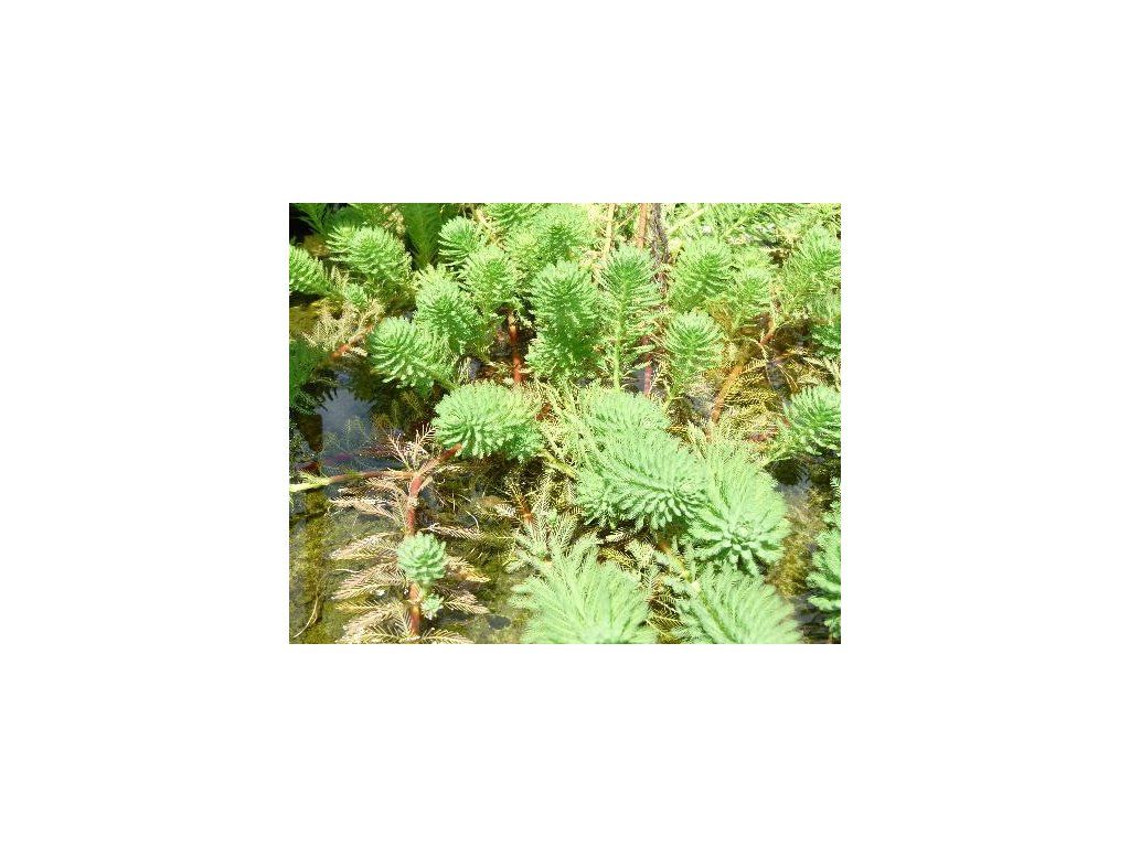Tausendblatt - auch bekannt als Myriophyllum, ist eine attraktive Wasserpflanze aus Südamerika, die oft wegen ihres fein gefiederten, farnähnlichen Blattes gezüchtet wird. Die Pflanze hat blaugrüne bis hellgrüne Blätter, die in Quirlen um den Stiel wachsen und teilweise untergetaucht oder über der Wasseroberfläche sichtbar sein können. Sie ist besonders in Zierteichen und Becken wegen ihres eleganten Aussehens und ihrer Fähigkeit, die Wasserqualität zu verbessern, beliebt. Unter unseren Bedingungen ist sie nicht vollständig frostbeständig – in flachen Teichen friert sie über den Winter oft aus. Im Herbst ist es möglich, das Tausendblatt herauszunehmen, in einem Behälter mit Wasser an einem frostfreien Ort aufzubewahren und im Frühjahr neu zu pflanzen. In tieferen Teichen kann sie unter dem Eis überwintern, solange der gesamte Boden nicht zufriert.