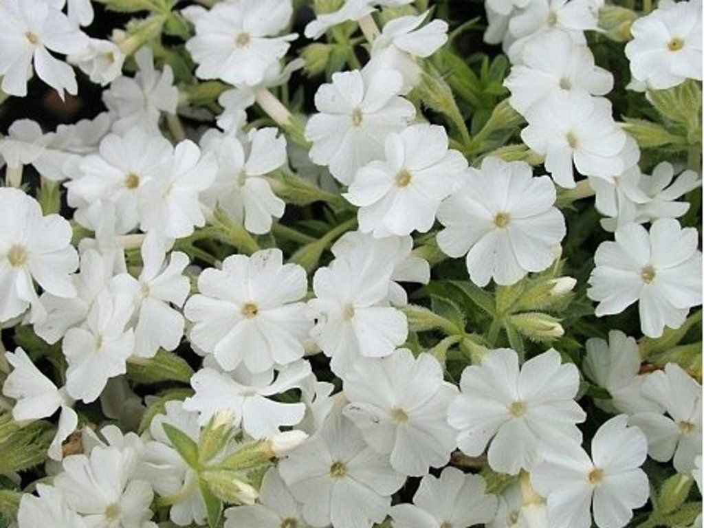 Phlox subulata 'Calvides White' - Niedrige, kissenförmig wachsende Staude. Nach der Blüte werden die Pflanzen etwa auf die Hälfte ihrer Höhe zurückgeschnitten. Der Boden für den Phlox sollte mäßig trocken sein, man sollte nur wenig gießen und düngen. Der Standort sollte sonnig sein. Wir verwenden sie als Bodendecker für Steingärten, als Rand für Beete, an Mauern und an sonnigen Hängen.