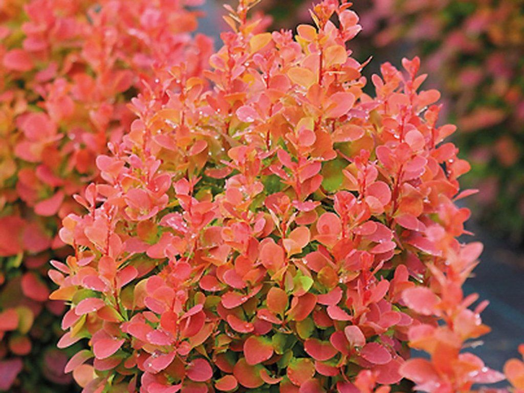 Thunbergs Berberitze 'Florence' - Thunbergs Berberitze stammt aus Ostasien, insbesondere aus Japan, wo sie natürlicherweise an sonnigen Hängen und Waldrändern wächst. Die Sorte ‘Florence’ ist eine moderne europäische Selektion mit geschütztem Namen, gezüchtet für kompaktes Wachstum und stabile purpurne Blattfärbung. Der Strauch bildet eine dichte, leicht abgerundete Wuchsform, die im Erwachsenenalter eine Höhe und Breite von etwa 0,6-0,8 m erreicht. Die Triebe sind leicht dornig, was seine Funktion als niedrige Schutzbarriere erhöht. Die Blätter sind klein, elliptisch, treiben im Frühjahr in dunkelroten Tönen aus, behalten im Sommer eine satte purpurne Farbe und färben sich im Herbst karminrot. Im Mai erscheinen kleine gelbe Blüten, unauffällig, aber wichtig für Bestäuber. Im Herbst reifen glänzende rote Beeren, die dekorativ sind und als Vogelfutter dienen, aber nicht zum Verzehr bestimmt sind. Sie findet Anwendung in niedrigen Hecken, Beetumrandungen, Flächenpflanzungen und in Kübeln. In Kompositionen kontrastiert sie gut mit hellblättrigen Sträuchern, Lavendeln, Spiersträuchern oder Ziergräsern.