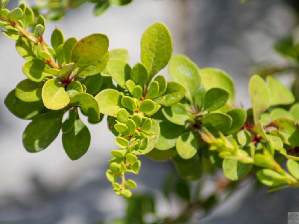 Berberitze Thunbergs 'Green Carpet' - stammt aus Ostasien, insbesondere aus Japan, wo sie auf offenen Standorten, felsigen Hängen und an Waldrändern wächst. Die Sorte ‘Green Carpet’ wurde als niedrige, breitwüchsige Form mit Schwerpunkt auf Bodendeckerfunktion und langfristiger Stabilität des Bestandes gezüchtet. Der Strauch bildet einen dicht verzweigten, halbkugeligen bis kriechenden Habitus, der im Erwachsenenalter eine Höhe von etwa 0,4-0,6 m und eine Breite von 1,2-1,5 m erreicht. Die Triebe sind fein dornig, die Blätter klein, elliptisch, tiefgrün und verfärben sich im Herbst allmählich gelb, orange bis rot. Im Mai erscheinen kleine gelbe Blüten einzeln entlang der Triebe, die unauffällig, aber wichtig für Bienen und andere bestäubende Insekten sind. Im Herbst reifen rote Beeren, die bis in den Winter hinein dekorativ sind und als Vogelfutter dienen. Sie wird hauptsächlich als Bodendecker an Hängen, in öffentlichen Grünanlagen, Parks, entlang von Straßen und in privaten Gärten eingesetzt, wo sie Rasen an schwer zugänglichen Stellen ersetzt. Sie lässt sich gut mit höheren Sträuchern, Ziergräsern und Bäumen mit leichter Krone kombinieren.