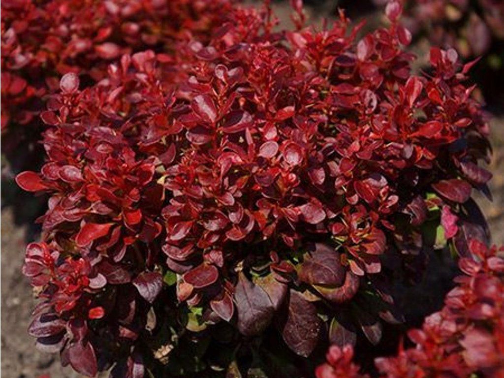 Berberitze Thunbergs 'Red Compact' - eine sehr beliebte und formstabile Sorte des Zwergstrauchs, die für ihr natürlich dichtes und symmetrisches Wachstum geschätzt wird. Sie bildet ordentliche, aufrechte und sehr kompakte Büsche, die im ausgewachsenen Zustand eine Höhe und Breite von etwa 80 bis 100 Zentimetern erreichen. Die Blätter haben eine tief weinrote Farbe, die sehr elegant wirkt und den ganzen Sommer über einen stabilen Farbakzent im Garten bildet. Im Herbst verfärbt sich das Laub leuchtend feurig in leuchtenden Rot- und Orangetönen, was diese Sorte zu einem der auffälligsten Elemente der späten Jahreszeit macht. Im Mai erscheinen an den Zweigen kleine gelbe Blüten, die dezent unter den Blättern versteckt sind und die dunklen Töne des Strauchs harmonisch ergänzen. Dank ihrer sehr dichten Verzweigung und der Anwesenheit kleiner Dornen ist diese Sorte ideal für die Anlage von niedrigen, undurchdringlichen und farbbeständigen Hecken, die nur minimale Formgebung erfordern. Sie eignet sich auch hervorragend als Solitärpflanze in kleineren Gärten oder als farblicher Kontrast zu grünblättrigen Gehölzen und Nadelbäumen. Es ist eine außergewöhnlich widerstandsfähige Pflanze, die Kälte, Trockenheit und verschmutzte städtische Umgebungen problemlos verträgt.