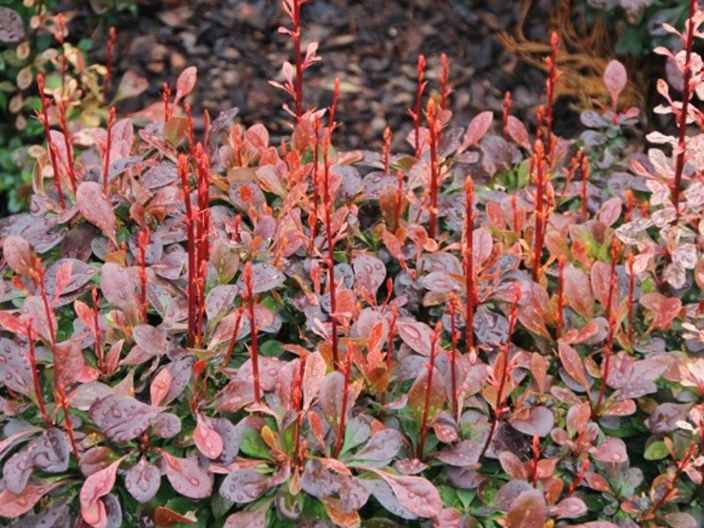 Anbau: Die Pflanze bevorzugt volle Sonne, wo sie die intensivste Färbung erhält. Im Halbschatten ist das Wachstum ebenso zuverlässig, jedoch kann die Blattfarbe weniger intensiv sein. Der Boden sollte durchlässig, leicht bis mäßig fruchtbar sein, mit einem pH-Wert zwischen 6 und 7. Nach der Pflanzung ist es ratsam, eine gleichmäßige Feuchtigkeit aufrechtzuerhalten, später verträgt der Strauch auch Trockenperioden gut. Mulch reduziert die Wasserverdunstung und hält die Bodentemperatur stabil. Düngung ist nicht notwendig, eine leichte Zugabe von Kompost im Frühjahr reicht aus. Der Schnitt erfolgt nach Bedarf nach der Blüte oder im frühen Frühjahr, insbesondere bei Pflanzen, die als niedrige Hecke verwendet werden. Die Berberitze ist langfristig krankheitsresistent, nur bei länger anhaltender Staunässe ist sie empfindlicher. Die Frostbeständigkeit reicht bis ca. -29 °C, was eine flächendeckende Kultur unter unseren Bedingungen ermöglicht. Für die Pflanzung von Hecken werden Abstände von 30-40 cm empfohlen, einzeln dann lockerer je nach Komposition. Die Pflanzung erfolgt von März bis Oktober.