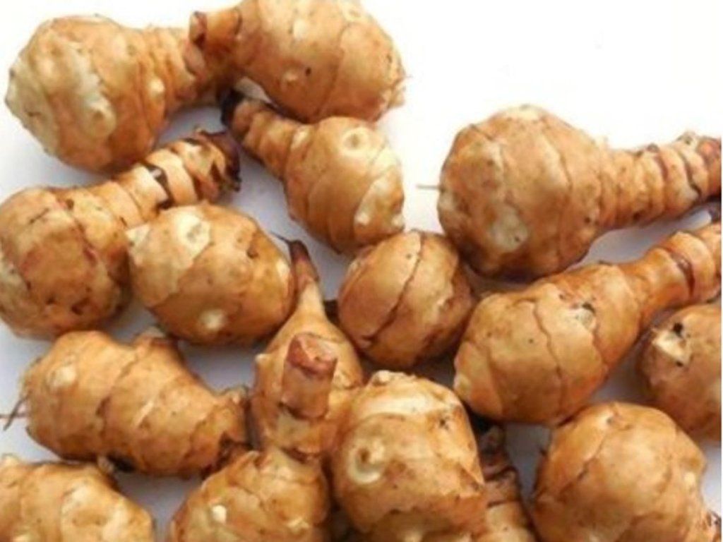 Topinambur - Topinambur oder auch Jerusalem-Artischocke genannt. Die Stängel dieser Knolle werden 1,2-3 m hoch. Von August bis Oktober schmücken sie einfache, gelbe Blüten. Wir sollten bedenken, dass die Pflanze sehr invasiv ist und sich auch an unerwünschten Stellen ausbreiten kann. Die Knollen des Topinamburs sind essbar, ähneln Kartoffeln, sind kleiner und können auf verschiedene Weise kulinarisch zubereitet werden. Am besten schmecken sie im Herbst oder im frühen Frühling.