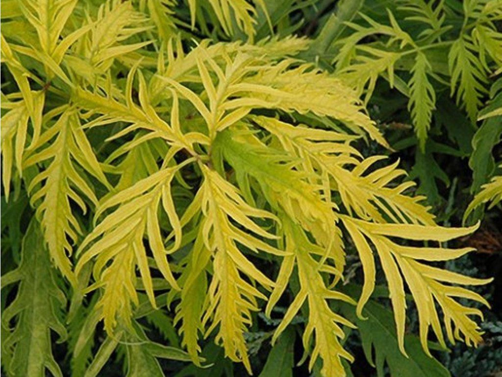 Holunder 'Sutherland Gold' - auffälliger und attraktiver Holunder-Kultivar. Die Blätter sind farnartig gefiedert, von leuchtend goldgelber Farbe, wobei die neuen Triebe einen rosa bis rotbraunen Rand aufweisen. Die Blütenstände sind nicht groß. Die Früchte, die im Sommer nach den Blüten erscheinen, sind leuchtend rote, glänzende Perlen. Erreicht eine Höhe von 1,5- 2,5 m. Für den besten Effekt empfehlen wir, ihn jedes Frühjahr auf die Hälfte der ursprünglichen Größe oder weniger zurückzuschneiden, damit er neue Triebe hervorbringt, die zuverlässig belaubt sind.