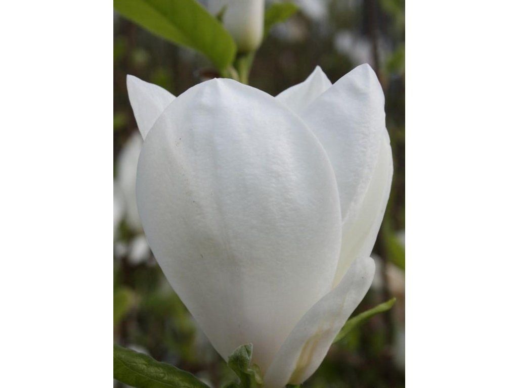 Magnolie Soulangeana 'Alba Superba' - ein laubabwerfender Strauch, der eine Höhe von 4-6 m und eine Breite von 3-4 m erreicht. Er bildet einen ausladenden und reich verzweigten Strauch. Er hat sehr duftende Blüten, die in ihrer Form an Tulpenblüten erinnern. Sie erscheinen an kahlen Zweigen, also vor dem Blattaustrieb, meist schon ab Mitte April. Sie haben eine cremeweiße Farbe, nur im Kelch zeigt sich ein leichter Rosaton. Die Blüten können etwa 30 cm breit sein, natürlich bei voller Entfaltung. Die Blätter sind breit eiförmig, oval, steif, leicht gewellt und haben eine satte bis dunkelgrüne Farbe. Die Pflanze ist voll frostbeständig. Dieser Kultivar eignet sich auch hervorragend als Solitär. Insgesamt ist die Magnolie ein beliebtes Element für Gärten, sie bringt ein zartes und einzigartiges Aussehen in jeden Garten.