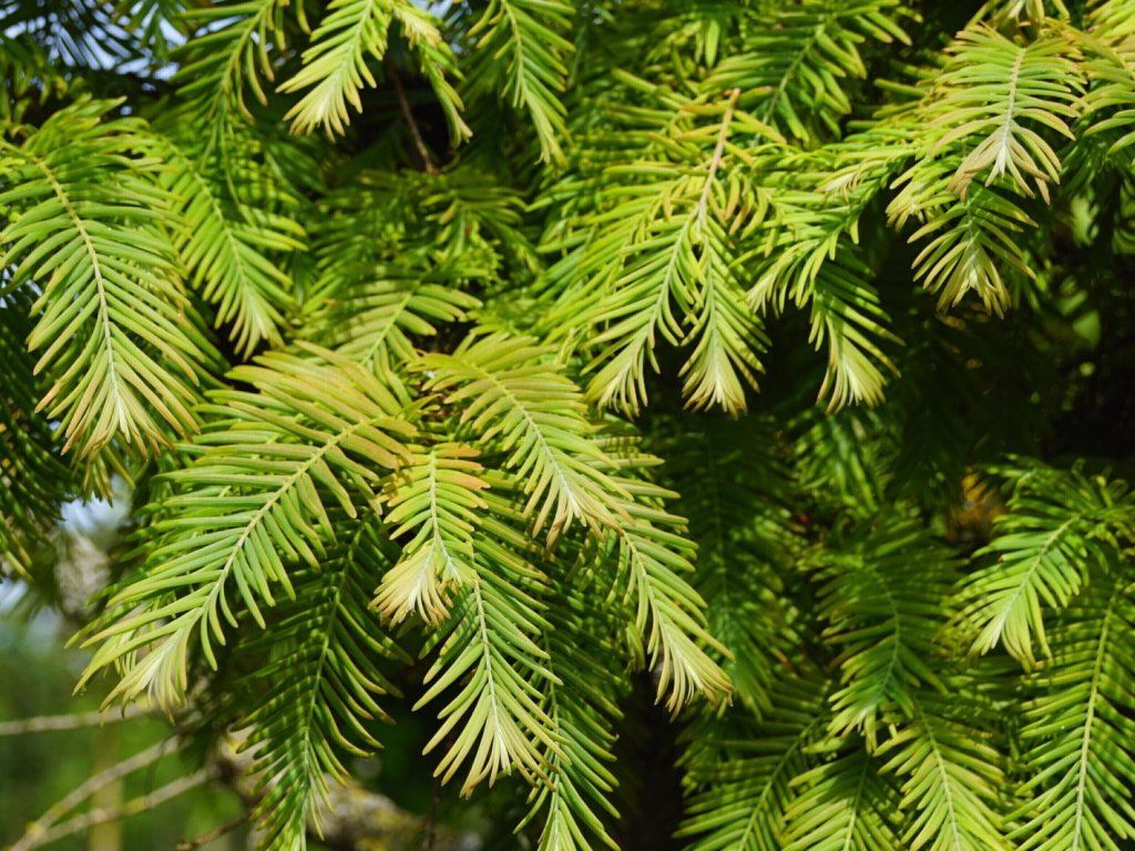 Urweltmammutbaum 'Matthaei Broom' - ein immergrüner Nadelbaum mit eher langsamem, kompaktem Wachstum. Dank seiner flachen, abfallenden Nadeln wird er oft mit der Sumpfzypresse verwechselt. Er wächst unregelmäßig zu einem ovalen Busch heran und bildet erst mit dem Alter eine Spitze aus. Die Nadeln sind weich, flach und hellgrün. Die Zweige sind leicht hängend, angeordnet. Im Herbst färbt er sich in orange-gelben bis tiefgelben Farben. Voll frostbeständig bis ca. -29 °C.