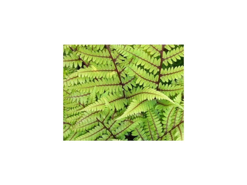 Papratka vidalii - hellere Variante des Farnkrauts, erreicht eine Höhe von 80cm und eine Breite von 70cm. Fächerförmige, gewölbte Blätter sind goldgelb bis limettengrün gefärbt; die Blattadern sind auffallend rot.