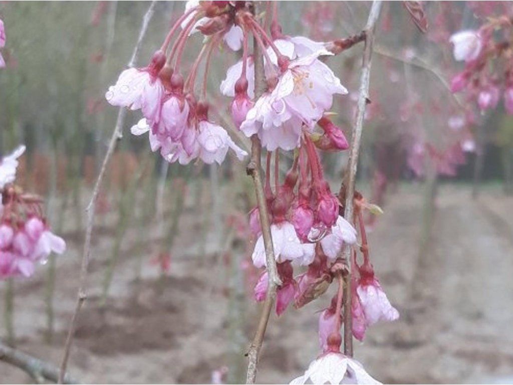 Vogelkirsche 'Pendula' - mittelgroßer Baum oder Strauch, der normalerweise eine Höhe von etwa 4 - 5 m erreicht. Die Äste wachsen eher in die Breite, sind unregelmäßig angeordnet und bilden eine ausladende Krone. Die Astenden bilden einen Überhang, der im Frühjahr wunderschön mit weißen bis hellrosa Blüten übersät ist. Die Blüte ist wirklich sehr üppig. Während des Sommers beginnen sich kleinere Früchte (Kirschen) zu bilden. Sie sind eher für Vögel geeignet, ihr Geschmack ist sehr herb. Die Blätter sind laubabwerfend und haben eine dunkelgrüne Färbung. Sie sind 7 - 10 cm lang und am Rand fein gesägt. Im Herbst verfärben sie sich in goldene und kupferne Farbtöne. Ideal als Solitärbaum für Gärten oder Parks. Er ist pflegeleicht und vollständig frostbeständig.