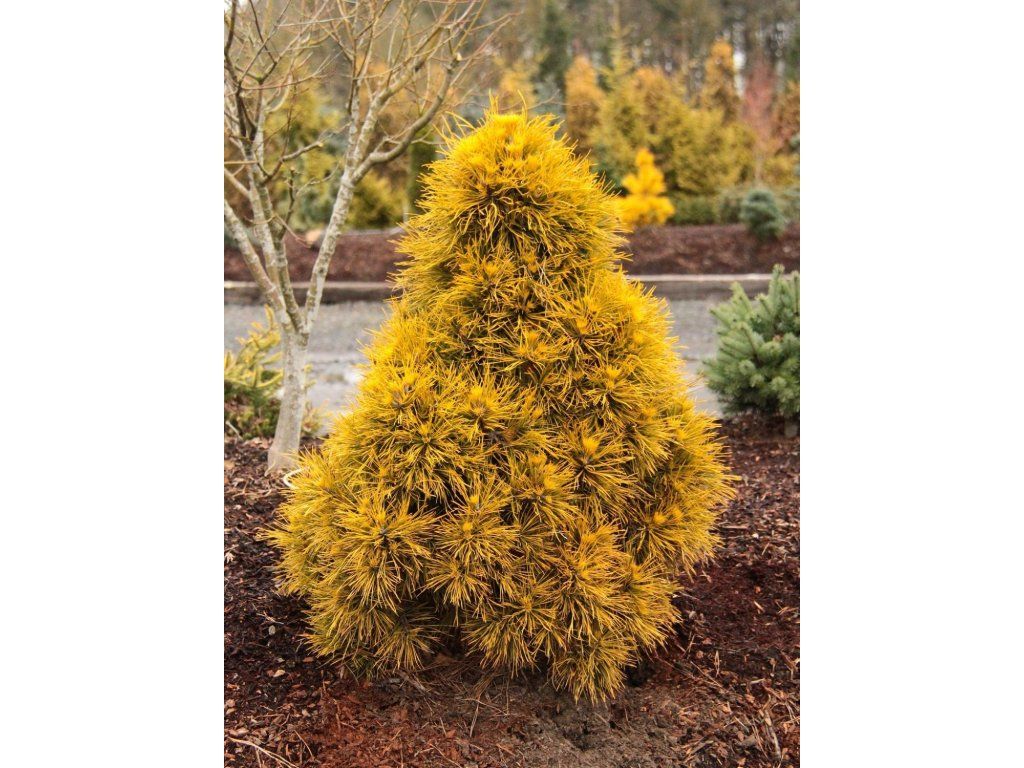Forst-Kiefer 'Moseri' - stammt aus einem weitläufigen Areal Europas und Nordasiens, wo sie an sonnigen, oft sandigen und ärmeren Standorten wächst. Die Sorte 'Moseri' gehört zu den langsam wachsenden, kompakten Formen mit dichter Verzweigung. Die Nadeln sind steif, kurz bis mittellang, graugrün bis blaugrün und bleiben mehrere Jahre am Baum, wodurch sie auch im Winter ausgeglichen wirkt. Die Sorte wächst langsam, nach 10 Jahren erreicht sie etwa 1,2–1,5 m Höhe und 0,9–2,0 m Breite, im ausgewachsenen Zustand dann meist 2–3 m Höhe und 2–3 m Breite. Im Frühjahr, meist im April bis Mai, erscheinen gelbe männliche Zapfen mit Pollen, später können sich kleine Zapfen bilden, die im folgenden Jahr reifen. Die Pflanze bildet regelmäßig eine kegelförmige bis abgerundete Wuchsform, die sich mit dem Alter erweitert. In tschechischen Gärten wird sie als Solitär für kleine Räume, in Gruppen zwischen Steinen, in Heidegärten und Trockenbeeten oder in größeren Gefäßen eingesetzt, wo sie gut mit Ziergräsern, Lavendel und niedrigen Wacholderarten kontrastiert. Das Wachstumstempo beträgt in jungen Jahren etwa 10–20 cm pro Jahr, was die langfristige Erhaltung in der Komposition ohne häufige Eingriffe erleichtert. Im Vergleich zur gewöhnlichen Waldkiefer aus Samen, die schnell einen hohen Stamm bildet, bleibt 'Moseri' deutlich niedriger und kompakter und ist daher auch dort geeignet, wo kein Platz für einen großen Baum ist.