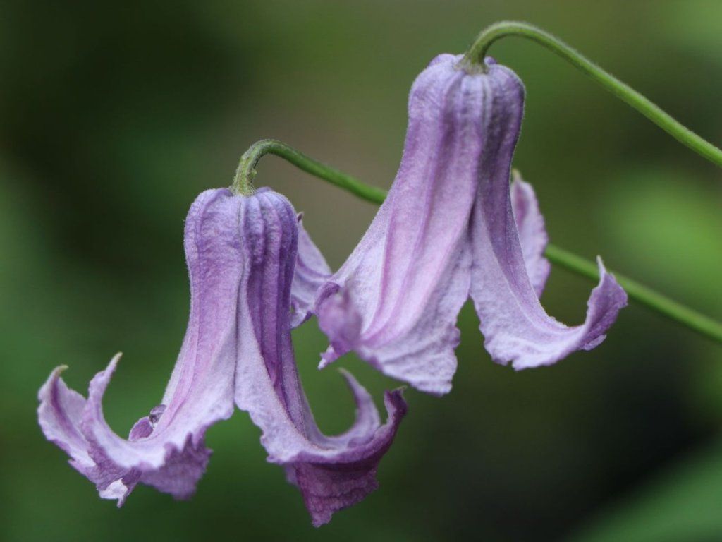 Clematis 'Crispa Angel' - eine sehr schöne Sorte aus Japan. Die Blüten sind glockenförmig und wiegen sich im Wind. Sie sind im Durchschnitt etwa 4 cm groß und bestehen aus 4 Blütenblättern, die blau mit einem zarten Weißton gefärbt sind. Der Rand der Blütenblätter ist leicht gewellt und die Spitzen sind spitz. Sie blüht von Juli bis September. Sie wird Ihren Garten die ganze Sommersaison über schmücken. Die Blätter sind ziemlich groß, bis zu 16 cm. Sie haben eine frische grüne Farbe. Neue Triebe sind hellgrün, ältere haben Brauntöne. Die Pflanze erreicht eine Höhe von etwa 120–150 cm. Gehört zur 3. Gruppe der Clematis, die ihren Schnitt bestimmt. Clematis sollten auf verschiedenen Arten von Stützen angebaut werden, z. B. an Pavillons, Gittern, Stöcken, Pergolen oder anderen Stützen. Sie ist pflegeleicht und somit eine geeignete Pflanze für Anfänger oder erfahrene Gärtner.