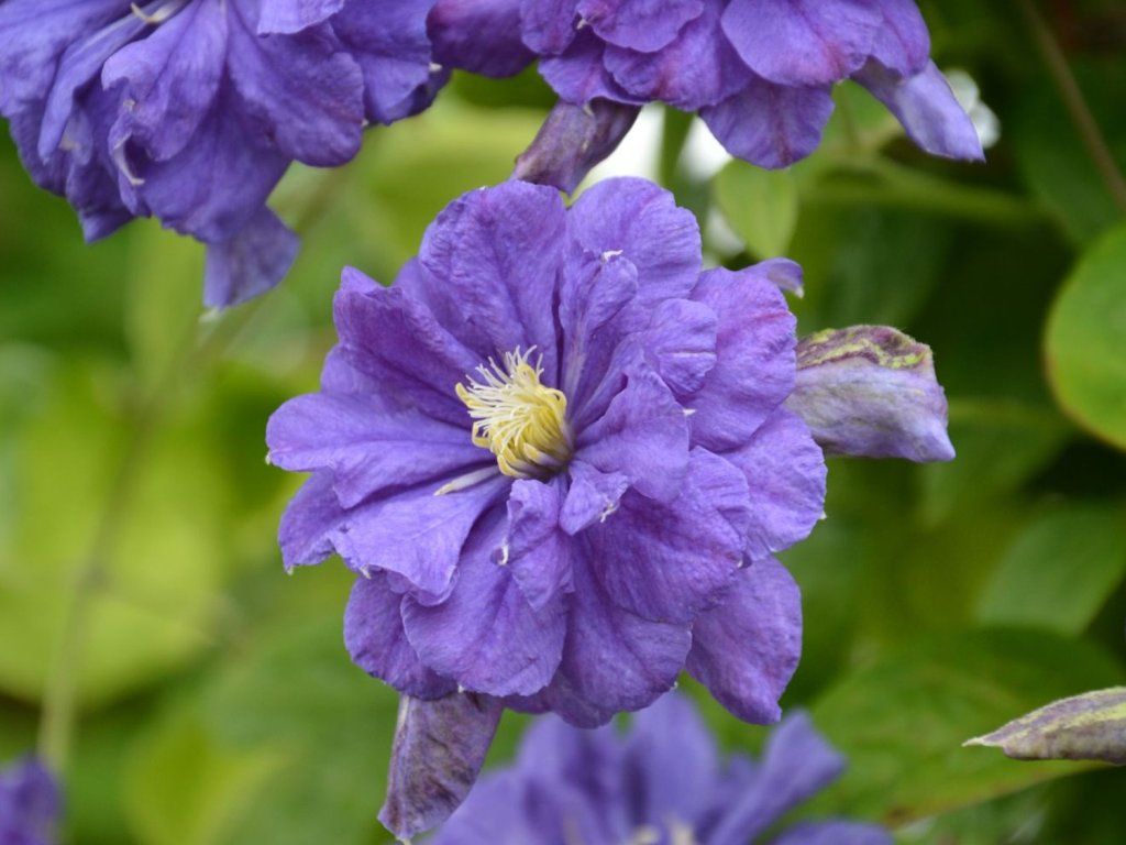 2. Gruppe - besteht aus einer Gruppe von Clematis, die im Frühsommer blühen. Die Blüten bilden sich im Mai und Juni an den letztjährigen Trieben; danach erscheinen sie in geringerem Maße im August und September. Der Schnitt sollte sanft sein, etwa 1,5 m über dem Boden, und bei günstigem Wetter zwischen November und März durchgeführt werden. Vor dem Austrieb werden nur schwache und abgestorbene Triebe entfernt.