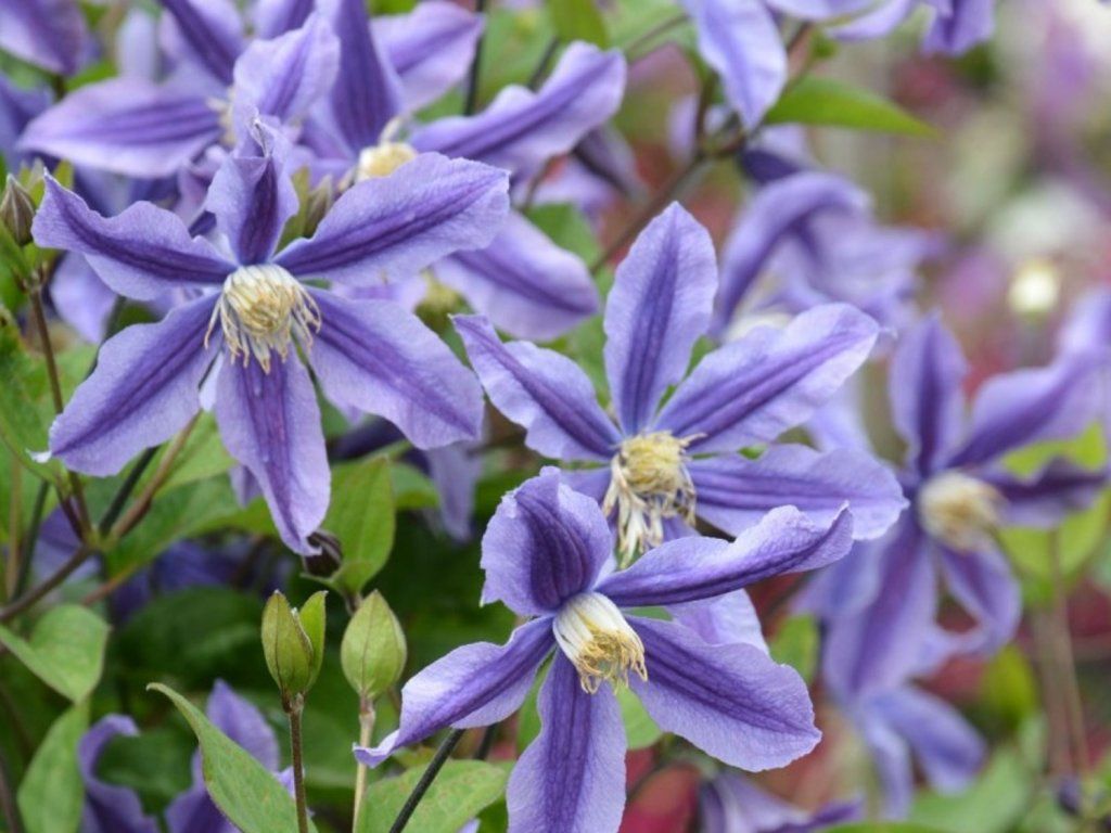 2. Gruppe - besteht aus einer Gruppe von Clematis, die im Frühsommer blühen. Die Blüten bilden sich im Mai und Juni an den letztjährigen Trieben; danach erscheinen sie in geringerem Maße im August und September. Der Schnitt sollte sanft sein, etwa 1,5 m über dem Boden, und bei günstigem Wetter zwischen November und März durchgeführt werden. Vor dem Austrieb werden nur schwache und abgestorbene Triebe entfernt.