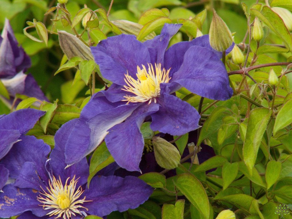 Clematis 'Neonka' - eine neue, schöne Sorte von Clematis, die Sie auf den ersten Blick verzaubern wird. Im ausgewachsenen Zustand erreicht die Sorte je nach Anbaubedingungen standardmäßig eine Höhe von etwa 200 - 250 cm. Die Blätter sind tiefgrün, eiförmig und fallen im Winter ab. Die Blüten, die von Juni bis September erscheinen, sind blau-violett gefärbt und verleihen der gesamten Pflanze ein wunderschönes Aussehen. Gehört zur 2. Schnittgruppe der Clematis. Clematis sollten auf verschiedenen Arten von Stützen angebaut werden, z. B. an Pavillons, Gittern, Stöcken, Pergolen oder anderen Stützen. Die Clematis ist insgesamt ein schönes Element für Gärten, sie bringt Farbe und ein einzigartiges Aussehen in jeden Garten. Wenn Sie also eine anspruchslose und widerstandsfähige Kletterpflanze suchen, die mit ihren Blüten auf den ersten Blick besticht, dann ist die Clematis die richtige Wahl.
