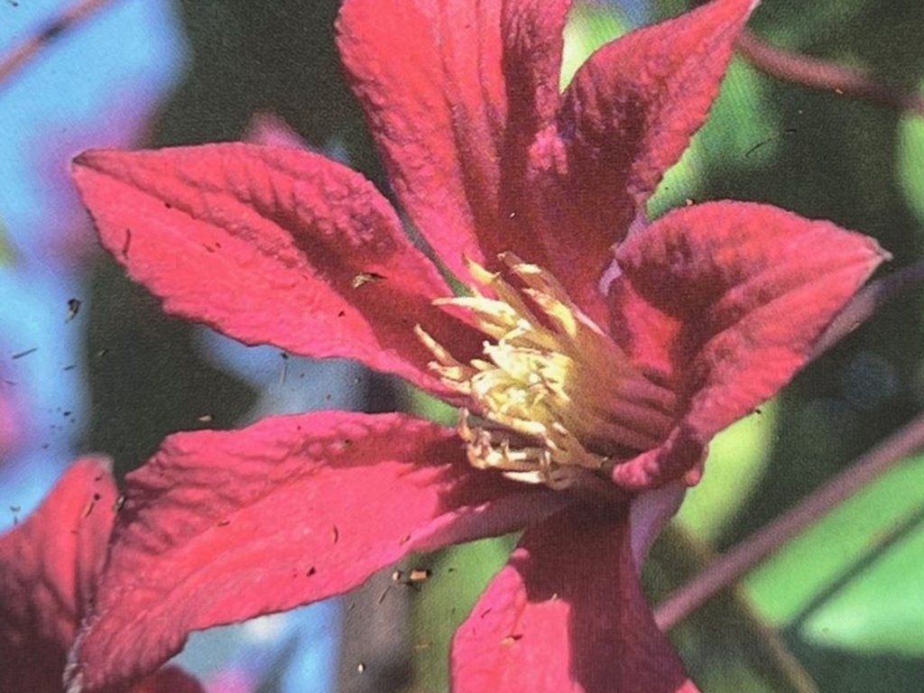 Clematis 'Scarlet Windmilll' - eine neue schöne Sorte, die in Polen gezüchtet wurde. Im ausgewachsenen Zustand erreicht die Sorte standardmäßig eine Höhe von etwa 2,5 - 3 m, abhängig von den Kulturbedingungen. Die Blätter sind mittelgroß, tiefgrün und haben eine eiförmige Form mit einer ausgeprägten Spitze, sie fallen im Winter ab. Die Blüten bestehen aus 4 - 5 zarten Blütenblättern, die tiefrot gefärbt sind. In der Mitte der Blüten befinden sich Staubgefäße mit Staubbeuteln, die tiefgelb gefärbt sind und so einen schönen Kontrast bilden. Die Blütezeit ist von Juni bis Oktober. Sie gehört zur 2. Gruppe der Clematis, die ihren Schnitt bestimmt. Wir empfehlen, sie an sonnigen oder leicht schattigen Standorten zu pflanzen. Clematis sollten auf verschiedenen Arten von Stützen angebaut werden, z. B. an Pavillons, Gittern, Stöcken, Pergolen oder anderen Stützen. Sie ist pflegeleicht und wird daher oft als Kletterpflanze für tschechische und slowakische Gärten gewählt.