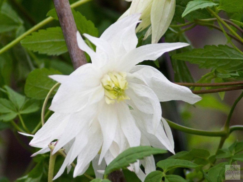 Clematis 'White Swan' - eine interessante Sorte, die schöne, gefüllte, schneeweiße Blüten mit sehr langen und verdrehten Blütenblättern hat. Blüht im April und Mai. Im Sommer wird die Pflanze von dekorativen Beeren (Samen) geschmückt. Die Sorte erreicht eine Höhe von etwa 2 - 3 m, je nach Kultivierungsbedingungen. Nach der Blüte bilden sich flaumige Samenstände, die die Pflanze ebenfalls schmücken. Die Blätter sind tiefgrün, eiförmig mit einer deutlichen Spitze und fallen im Winter ab. Gehört zur 2. Schnittgruppe der Clematis. Die Clematis ist eine Kletterpflanze und eignet sich hervorragend für Terrassen, Pergolen, Rankstäbe, Gitter oder andere künstlich geschaffene Stützen und bringt Farbe und ein einzigartiges Aussehen in jeden Garten. Sie ist pflegeleicht und gehört daher zu den am häufigsten gewählten Kletterpflanzen für tschechische und slowakische Gärten. Sie sollte auf keinen Fall in Ihrem Garten fehlen. Weiße Blüten heben sich gut von dunklem Hintergrund ab.