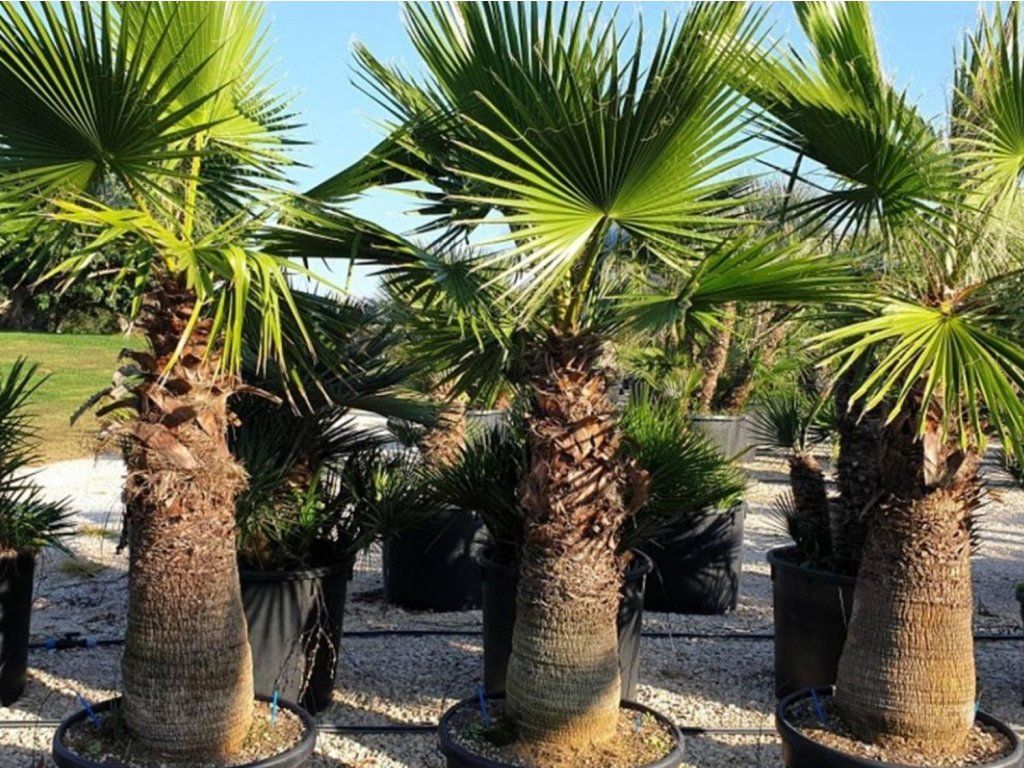 Washingtonia robusta - Syn. Pritchardia Robusta. Die Vertreter der Gattung Pritchardia gehören zu den schönsten Palmen überhaupt.Die Vertreter der Gattung Pritchardia gehören zu den schönsten Palmen überhaupt. Robusta ist eine kräftige und majestätische Palme, die man aufgrund ihrer einzigartigen Eigenschaften leicht erkennt. Zu ihren Hauptmerkmalen gehören ein fester, robuster Stamm, schnelles Wachstum und erstaunliche, für Palmen typische, fächerförmige Blätter. Im mediterranen Klima kann sie 20-30 m hoch werden, bei uns erreicht sie jedoch meist nicht mehr als 15 m. Der wunderschön gefärbte Stamm verjüngt sich von der Basis zur Spitze hin regelmäßig. Die Blätter sind bis zu 1 m lang, leuchtend grün, fächerförmig mit gezähnten Blattstielen. Erfüllt die Rolle einer Solitärpflanze in jedem Garten. Da es sich um eine wärmeliebende, tropische Pflanze handelt, empfehlen wir die Kultivierung als Kübelpflanze.