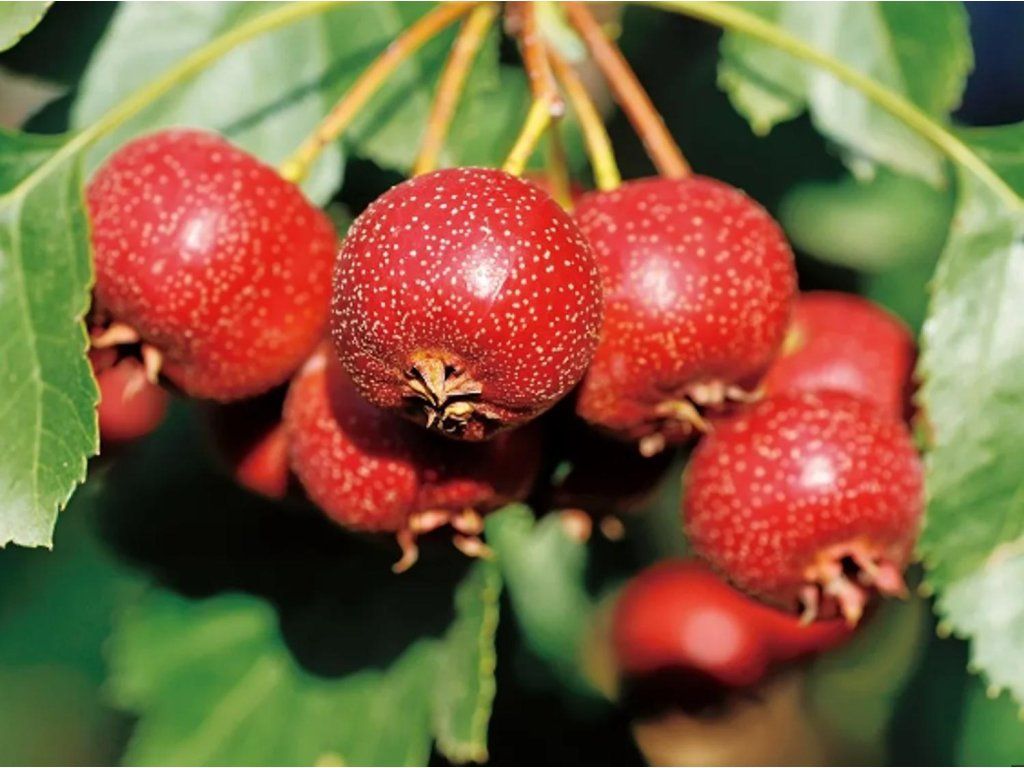 Weißdorn 'Early Mao Mao' - eine frühe Weißdornsorte, die vor allem dafür bekannt ist, dass sie früher als andere Sorten reift, normalerweise bereits im Spätsommer oder Frühherbst. Dieser Strauch oder kleinere Baum erreicht eine Höhe von etwa 3–4 Metern und ist bis zu -20 °C frostbeständig. Die Früchte sind mittelgroß, tiefrot und haben einen süß-säuerlichen Geschmack. Sie sind sehr saftig und schmackhaft, eignen sich zum direkten Verzehr oder zur Weiterverarbeitung, z. B. zu Marmeladen, Sirupen oder Kompott. Diese Sorte ist beliebt für ihren hohen Ertrag und die frühere Ernte, die bereits Ende August oder Anfang September frische Früchte liefert. Die Pflanze ist auch dank ihrer Blüte eine Zierde.