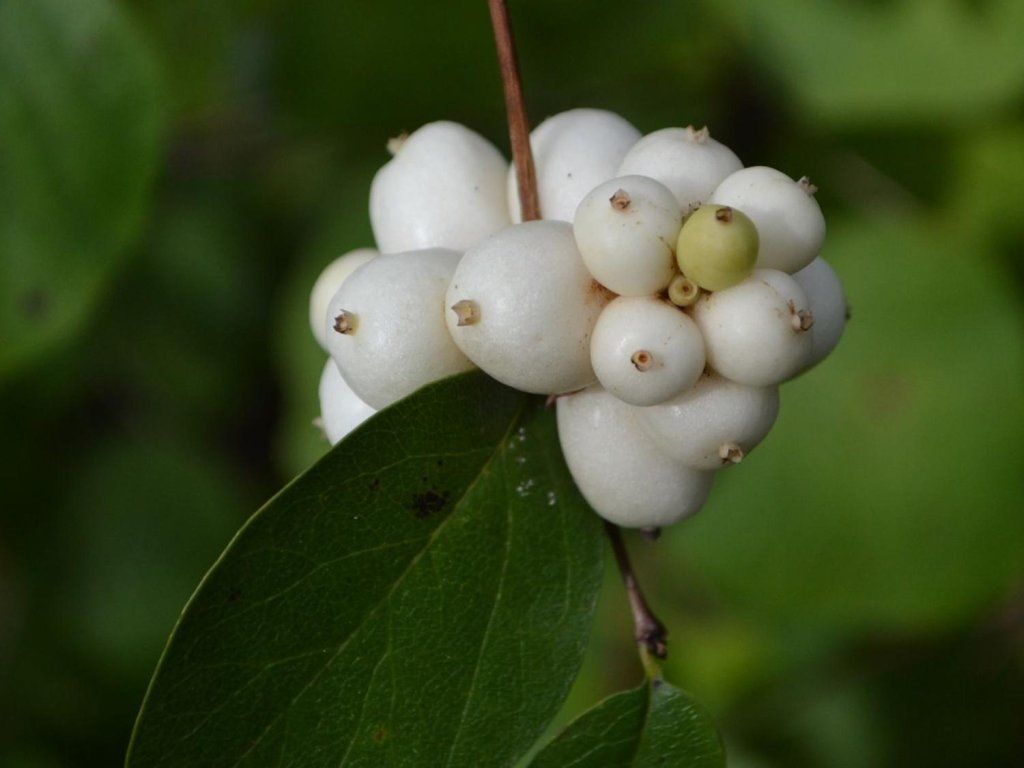 Symphoricarpos albus 'Turesson' - dichter, aufrechter Strauch, der bis zu 2,5 Meter hoch werden kann. Sein Wachstum ist mittelschnell. Er hat ovale, tiefgrüne Blätter, die bis zu den ersten Frösten am Strauch bleiben. Im Frühsommer blüht er mit glockenförmigen Blüten, die zu kurzen Trauben angeordnet sind. Sie sind nektarreich und ziehen viele Insekten an. Die Früchte, die sich im Herbst bilden, sind reinweiß und rund. Vorsicht, sie sind giftig.