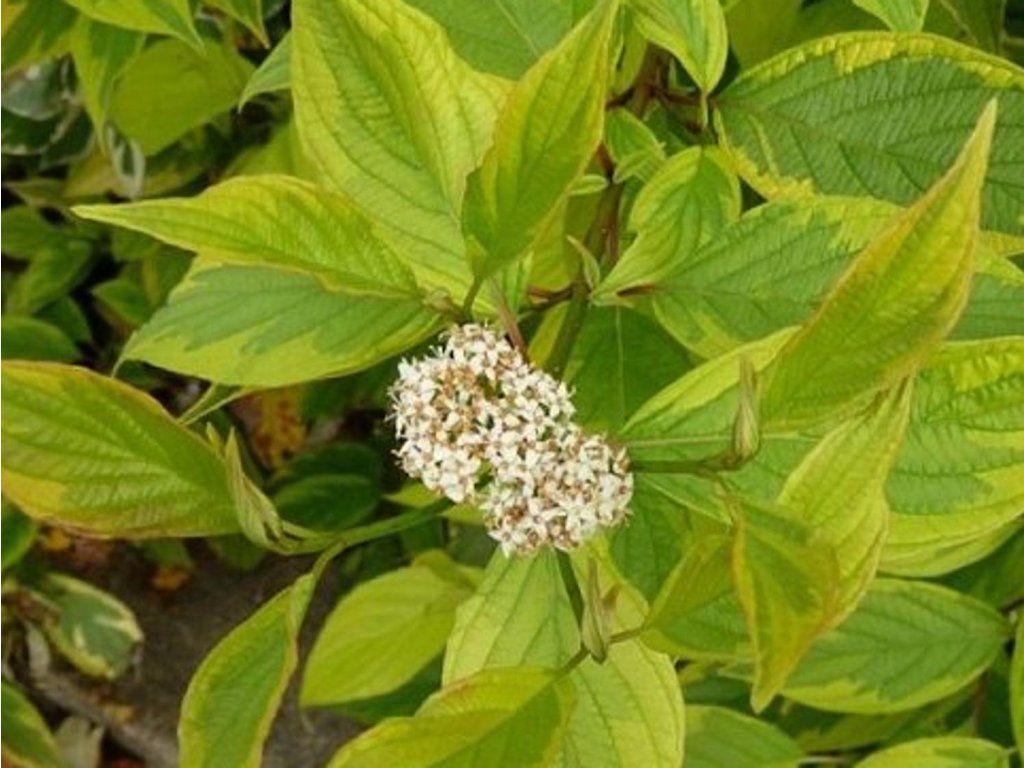 Cornus alba 'Gouchaultii' - eine interessante Sorte mit panaschierten Blättern, die eine Höhe von 1-2,5 m bei gleicher Breite erreicht. Es handelt sich um einen frostbeständigen Strauch, der für jeden normalen Boden geeignet ist und auch leichte Staunässe verträgt. Benötigt volle Sonne.