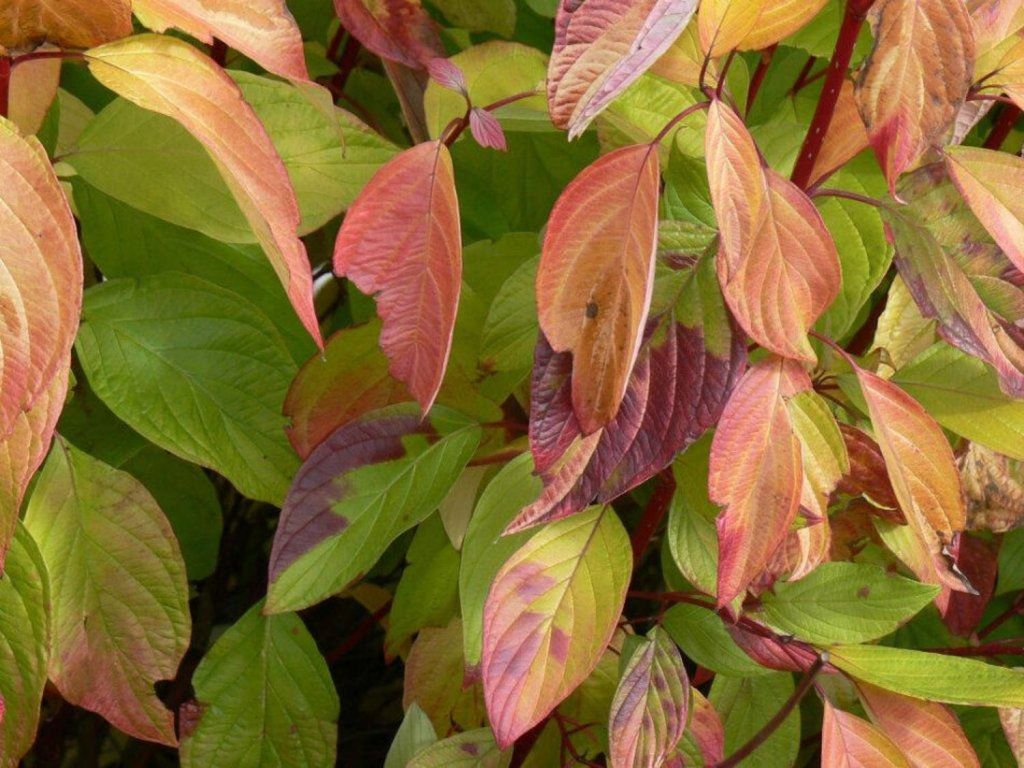 Weißer Hartriegel 'Neon Burst®' - anspruchsloser, robuster Kultivar des beliebten Hartriegels. Bildet einen mittelgroßen, laubabwerfenden Strauch von kompakter, kugelförmiger Gestalt, der bis zu 150 - 200 cm in Höhe und Breite wächst. Die Blätter sind neongelbgrün gefärbt und bilden einen großartigen Kontrast zu den roten Stielen. Der Strauch blüht im Sommer, die Blüten sind eher klein und weiß. Sie werden von dekorativen Beeren abgelöst, die für Vögel attraktiv sind. Im Herbst färben sich die Blätter intensiv purpurrot. Nach ihrem Abfallen werden die kahlen Stiele freigelegt, die scharlachrot gefärbt sind und sich durch hohen Glanz auszeichnen. Diese Färbung werden Sie sicher jeden Winter schätzen. Er erfüllt die Rolle einer Solitärpflanze in jedem Garten.