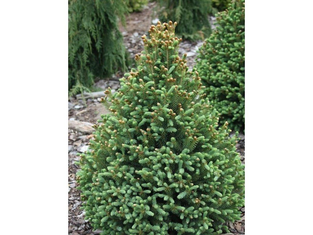 Die Weiß-Fichte, auch bekannt als Kanada-Fichte, ist ein Nadelbaum aus Nordamerika, der für seine Widerstandsfähigkeit und sein dekoratives Aussehen geschätzt wird. Sie erreicht eine Höhe von 15 bis 30 Metern und hat eine kegelförmige, regelmäßige Krone. Die Nadeln sind kurz, weich und hell- bis silbriggrün, was ihr den typischen „grauen“ Farbton verleiht, nach dem sie benannt ist. Die Sitka-Fichte ist sehr frostbeständig und verträgt auch kälteres Klima. Gleichzeitig ist sie relativ anspruchslos an die Bodenbedingungen, bevorzugt jedoch gut durchlässige, leicht saure bis neutrale Böden. Er benötigt einen sonnigen bis halbschattigen Standort und eignet sich für größere Gärten, Parks oder als Teil von Forstpflanzungen. Dank ihrer Robustheit und schönen Färbung wird sie auch oft als Weihnachtsbaum verwendet.