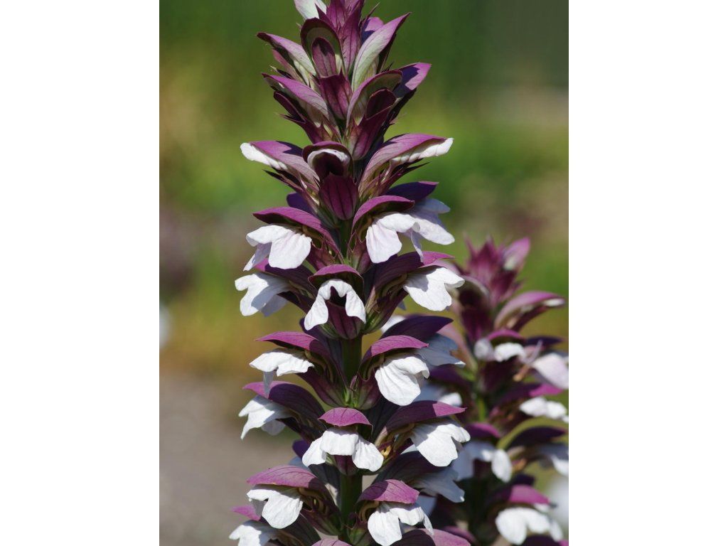 Acanthus mollis - Staude mit aufrechtem Wuchs, erreicht eine Höhe von 50 bis 150 cm. Sie zeichnet sich durch große Blätter mit ausgeprägter Struktur aus. Sie sind lang – können bis zu 1 m lang sein, eiförmig, tief gelappt, glänzend und frischgrün gefärbt. Im Juni und Juli erscheinen trichterförmige Blüten, die in bis zu 60 cm langen Ähren angeordnet sind. Die Blüten selbst sind purpurfarben geädert und weiß. Wenn der Winter mild ist, verhält sich die Pflanze teilweise immergrün. Die Frucht ist eine Kapsel. Es ist eine ideale Solitärpflanze, aber sie kommt auch in hohen Staudenpflanzungen zur Geltung.