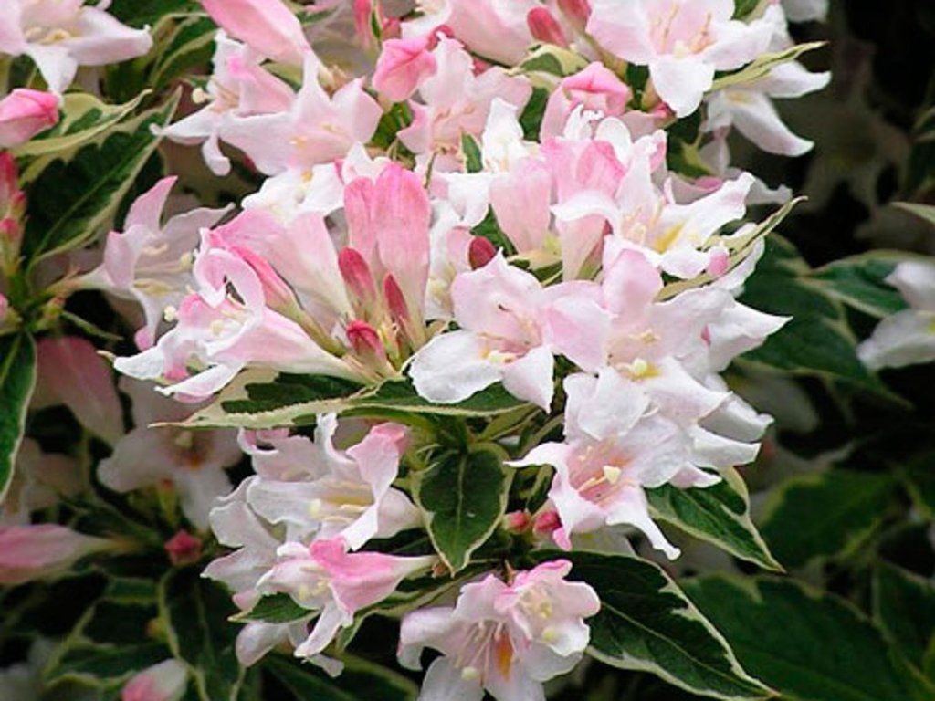 Weigela 'Splendid' - eine Sorte, die 2-3 m hoch wird. Die Blätter sind frischgrün mit einem schmalen weißen Rand. Die Blüten sind röhrenförmig und blassrosa. Sie erscheinen von Mai bis Juni. Der Strauch wächst aufrecht und kompakt. Mit seinen Blättern wird er Sie sofort begeistern.