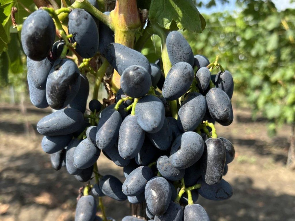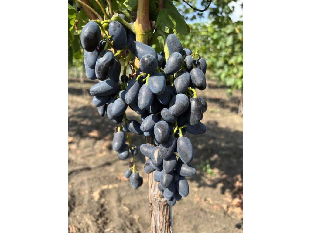 Weinrebe 'Akademik' - blaue Tafeltraube ursprünglich von der Halbinsel Krim. Es handelt sich um eine frühe Sorte, deren Trauben bereits Ende August reifen, was sie zu einer der ersten Erntemöglichkeiten der Saison macht. Die Beeren sind länglich-oval, mit einer schönen blau-schwarzen Farbe. Die Schale ist fest, was ihre Widerstandsfähigkeit beim Transport und bei der Lagerung gewährleistet. Das Fruchtfleisch ist knackig, der Geschmack ist sehr harmonisch und ausgewogen, bietet eine angenehme Kombination aus Süße und leichter Säure. Sie ist mäßig krankheitsresistent, ihre Frostbeständigkeit ist außergewöhnlich, sie widersteht Temperaturen bis zu -24 °C. Dank dieser Eigenschaft ist sie auch für Gebiete mit kälterem Klima und strengeren Wintern geeignet. Sie eignet sich für den direkten Verzehr, kann aber auch zur Zubereitung von Obstsalaten, Desserts oder als Garnitur für Speisen verwendet werden. Dank ihrer Anspruchslosigkeit und hervorragenden Eigenschaften ist sie bei Anfängern und erfahrenen Züchtern beliebt.