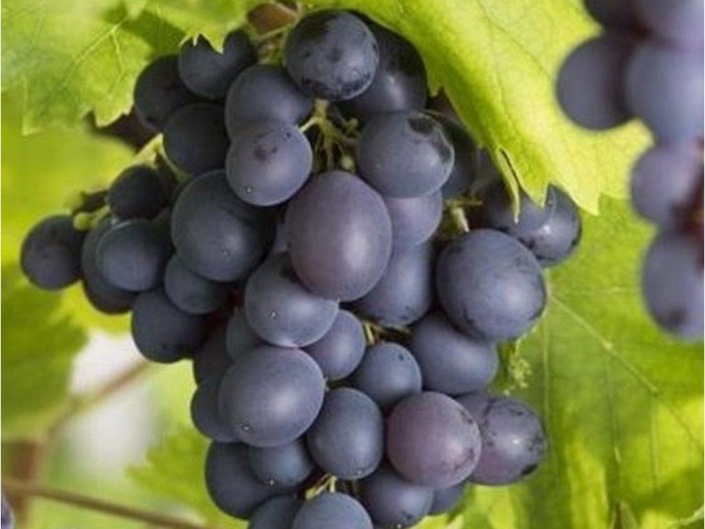 Weinrebe 'Attika' - eine kernlose Tafeltraubensorte griechischen Ursprungs, die sich durch große, ausgeprägt blauviolette Beeren und Trauben auszeichnet, die primär für den Verzehr frischer Früchte bestimmt sind. Die Farbe der Beeren ist dunkelblau bis blau-violett und die Beeren haben eine ovale bis leicht längliche Form, meist wiegen sie etwa 4-6 g. Die Trauben sind oft sehr mächtig, bis zu 600-900 g. Die Form der Trauben ist konisch oder zylindrisch-konisch mit einer gut ausgeprägten Struktur. Sie gehört zu den frühen bis mittelfrühen Sorten und ist bereits Anfang September erntereif. Das Fruchtfleisch der Früchte ist saftig, knackig, süß mit einer feinen Textur und kernlos, was ihre Attraktivität für den direkten Verzehr erhöht. Die Beeren widerstehen Rissen bei übermäßigem Regen gut, gleichzeitig erreicht ihre Frostbeständigkeit bis zu ca. –20 °C. Sie stellt eine sehr interessante Wahl für Gärtner und kleinere Anbauer dar.