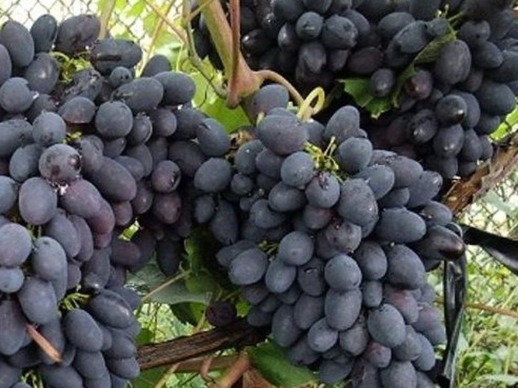 Weinrebe 'Kodrjanka' - eine Tafeltraubensorte, die in Moldawien durch die Kreuzung der Sorten Moldova × Marshal gezüchtet wurde. Die Früchte haben eine dunkelviolette bis bläuliche Schalenfarbe, die Beeren sind groß, oval und wiegen ungefähr 6-8 g. Die Trauben sind in der Regel groß und dicht, erreichen 400-600 g, manchmal bis zu 1 kg unter optimalen Bedingungen. Das Fruchtfleisch ist fleischig, saftig mit einem harmonischen Fruchtgeschmack, hohem Zuckergehalt und niedrigem Säuregehalt. Die Reifezeit ist früh bis mittelfrüh, die Ernte erfolgt üblicherweise Mitte September. Die Widerstandsfähigkeit der Sorte ist sehr hoch, die Frostbeständigkeit erreicht bis zu etwa -22 °C, die Krankheitsresistenz ist ebenfalls höher, sie bewältigt Transport- und Lagerbedingungen gut. Hinsichtlich der Nutzung eignet sie sich für den Anbau an Pergolen oder Pavillons, als dekorative und Nutzpflanze. Sie erreicht eine Höhe von bis zu etwa 5 m bei freiem Wuchs.
