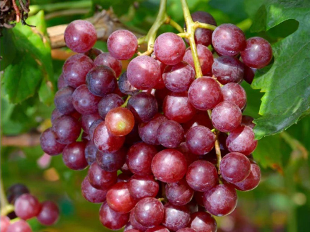 Weinrebe 'Rosana' - Tafeltraubensorte, typisch für den direkten Verzehr frischer Früchte. Sie wächst mäßig stark und bildet regelmäßige Erträge. Die Früchte haben rosa bis rot-rosa Beeren, die eine geringe Menge an Samen enthalten. Ihr Fruchtfleisch ist knackig, angenehm aromatisch und schmackhaft. Sie reift mittelspät, die Ernte erfolgt Ende September bis Mitte Oktober. Sie hat eine hohe Frostbeständigkeit und gleichzeitig eine mittlere Resistenz gegen Pilzkrankheiten, was sie zu einer relativ anspruchslosen Sorte macht. Es wird empfohlen, sie an Drahtgerüsten oder Pergolen zu führen, wo sie ausreichend Länge erreichen und gleichzeitig ein ästhetisches Aussehen bieten kann. Dank ihrer rosa Färbung, den schmackhaften Beeren und der guten Widerstandsfähigkeit ist Rosana eine ausgezeichnete Wahl für Gartenliebhaber, die eine Tafeltraube mit dekorativem und essbarem Nutzen wünschen.
