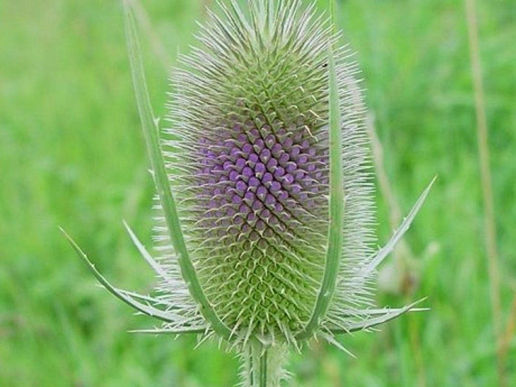 Wilde Karde - syn. D. sylvestris. Sie ist eine kräftige zweijährige Pflanze, die ursprünglich aus Europa und Westasien stammt und bei uns natürlich auf feuchten Wiesen, Dämmen und an Wegrändern wächst. Im ersten Jahr bildet sie eine bodennahe Rosette aus lanzettlichen Blättern, im zweiten Jahr wächst aus ihr ein aufrechter, dorniger Stängel, der normalerweise 1,5–2,0 m hoch und etwa 0,6–0,8 m breit ist. Die Blätter sind an der Basis oft zu becherförmigen „Behältern“ für Regenwasser verwachsen. Die Blütenstände bilden eiförmige bis zylindrische Köpfe von 4–8 cm Größe, um die sich im Sommer ein beweglicher Kranz aus kleinen, hellvioletten Blüten bildet. Nach der Blüte bleiben die festen Fruchtstände erhalten, die sich für Trockenbindereien eignen. Die Ernte für Dekorationen erfolgt normalerweise im August und September, und gleichzeitig werden sie von Vögeln gesucht, insbesondere wenn sie über den Winter im Beet belassen werden. In der Komposition passt sie gut zu Ziergräsern, Schafgarben, Eisenkraut und Wiesen-Salbei, wo sie Struktur und Winter-Silhouette hinzufügt. Die Dornen an den Stängeln und Hüllblättern sind ausgeprägt, daher wird die Pflanze außerhalb von engen Durchgängen platziert. In naturnahen Gärten und Wiesen kann die Wilde Karde zur Biodiversität beitragen und Nahrung sowie Unterschlupf für Insekten, insbesondere Bienen und Schmetterlinge, bieten. Interessant sind die Stängelblätter. Diese sind an der Basis miteinander verwachsen und bilden einen Behälter, in dem sich Regenwasser sammelt. Diese Wasserquelle wird von Insekten eifrig genutzt. Wenn Sie ein großes Beet oder einen weitläufigeren Gartenbereich haben, können Sie die Wilde Karde als Teil von gemischten Beeten mit anderen Stauden und Zierpflanzen in Erwägung ziehen.