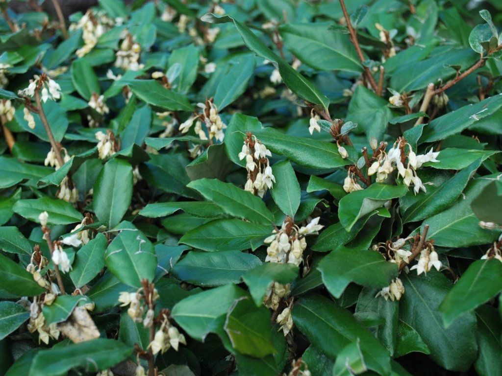 Pflege: Sie gedeiht am besten an einem sonnigen bis halbschattigen Standort, wo sie ein dichtes Wachstum und einen kompakten Habitus beibehält. Sie verträgt auch helleren Schatten, aber bei Lichtmangel lockert sich die Verzweigung und die Blätter verlieren ihren typischen Glanz. In kälteren Regionen wird ein windgeschützter Standort empfohlen, idealerweise an einer Mauer, einem Zaun oder in einer geschützten Gartenlage. Die Bodenansprüche sind gering. Sie bevorzugt durchlässige Böden, sandig-lehmige bis lehmige, mit guter Drainage. Langfristig vernässte und schwere lehmige Böden sind nicht geeignet. Der optimale Boden-pH-Wert liegt zwischen 6,5 und 7,5, der Strauch toleriert aber auch leicht alkalische Bedingungen gut. Die Pflanzen werden von März bis Oktober gepflanzt, wobei die Frühjahrspflanzung eine schnellere Wurzelbildung vor dem Winter fördert. Nach der Pflanzung wird in der ersten Vegetationsperiode eine regelmäßige Bewässerung empfohlen. Nach dem Einwurzeln ist der Strauch sehr trockenheitsresistent und benötigt auch in den Sommermonaten keine zusätzliche Bewässerung. Dank der Fähigkeit, durch Wurzelbakterien symbiotisch Luftstickstoff zu binden, hat sie geringe Düngeansprüche. In ärmeren Böden ist es ratsam, im Frühjahr Kompost oder gut verrottetes organisches Material hinzuzufügen. Das Mulchen im Wurzelbereich hilft, die Bodenfeuchtigkeit konstant zu halten und schützt das Wurzelsystem im Winter. Der Schnitt wird sehr gut vertragen und ermöglicht eine breite Anwendung in der Gartengestaltung. Er erfolgt vom Frühjahr bis Spätsommer, bei geformten Hecken auch mehrmals jährlich. Der Strauch treibt zuverlässig aus älterem Holz aus und regeneriert gut. Die Frosthärte ausgewachsener Pflanzen erreicht etwa -18 °C, an geschützten Standorten auch etwas mehr. Junge Pflanzen sollten in den ersten Wintern mit Mulch oder Tannenzweigen geschützt werden. Für Hecken wird ein Pflanzabstand von 60–80 cm verwendet, bei lockereren Pflanzungen oder als Solitär sollte die endgültige Breite des Strauchs berücksichtigt werden.