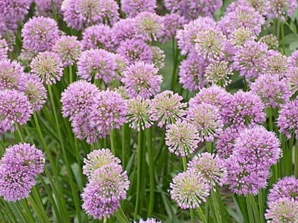 Zierknoblauch 'Millenium' - wunderbare Sorte des Sommerblumenknoblauchs Zierknoblauch, die Ende Juni etwa 30 cm hohe, feste Stiele mit 5 cm breiten Knospenköpfen bildet, die sich in der ersten Julihälfte zu leuchtend lila-violetten, kleinen, zart duftenden Blüten öffnen. Ideal für jeden Garten.
