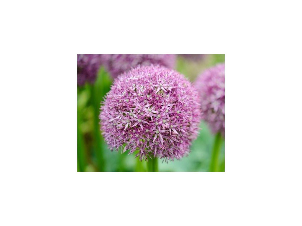 Zierknoblauch 'Pinball Wizard' - eine Kreuzung aus Zierknoblauch, mit wirklich großen Blüten, die einen Durchmesser von bis zu 20 cm erreichen können. Die Blüte besteht aus vielen fliederfarbenen Blüten. Sie erscheinen von Mai bis Ende Juni und werden von kräftigen Stielen getragen. Die Blätter bleiben, genau wie beim Globemaster, lange grün. Die Staude ist nektarreich und zieht Bienen und Schmetterlinge an. Eignet sich für die Gruppenpflanzung. Sie breitet sich gerne in Staudenbeeten aus. Ausgezeichnet für den Schnitt.