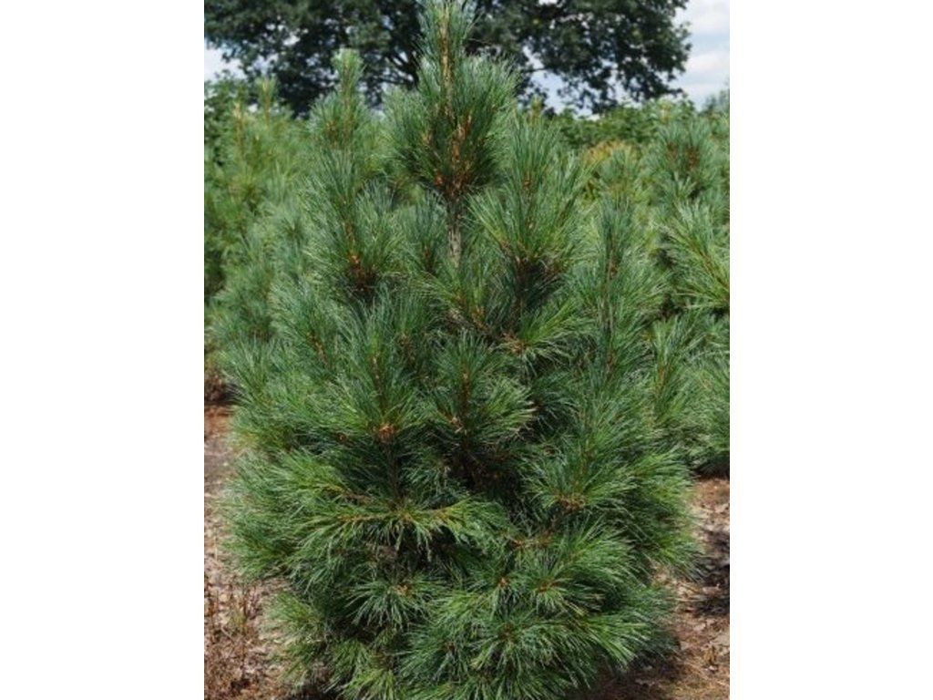 Zirbelkiefer - ursprünglich in den Hochlagen der Alpen und Karpaten, wo sie in kühlem Kontinentalklima bis zur Waldgrenze wächst. In Kultur ist sie eine langsam wachsende, langlebige Nadelbaumart, die im Garten normalerweise etwa 15–20 m erreicht, in der Natur kann sie höher sein. In der Jugend bildet er eine regelmäßig kegelförmige Krone, später wird die Krone lockerer und runder. Die Nadeln sind weich, 6–12 cm lang, in Büscheln zu je fünf, auf der Innenseite mit weißlichen Spaltöffnungsstreifen, so dass die gesamte Belaubung einen feinen silbrigen Schimmer hat. Im Frühling erscheinen unscheinbare Blütenstände, die weiblichen oft in dunkelrotvioletten Tönen, und entwickeln sich zu eiförmigen Zapfen von etwa 5–8 cm Länge. Die Zapfen öffnen sich nach der Reife nicht und beherbergen essbare, flügellose Samen, bekannt als Zirbelnüsse, die ähnlich wie Pinienkerne in der Küche verwendet werden. Die Art wird auch für ihren harzigen Duft und ihr duftendes Holz geschätzt, das traditionell in den Alpenregionen für Schnitzereien verwendet wird. In der Komposition wirkt sie am besten als Solitär, eventuell in lockeren Gruppen mit Lärchen, Birken, Rhododendren, Azaleen, Heidekraut oder mit kriechenden Wacholderarten, wo ihre ruhige, bergige Silhouette zur Geltung kommt. Die Kultur im Kübel ist nur in den ersten Jahren möglich, da die Wurzeln bald Tiefe benötigen, daher werden hohe Kübel und eine Drainageschicht gewählt. Im Winter muss der Kübel vor dem Durchfrieren mit einer Hülle geschützt werden. Unter guten Bedingungen kann der Baum normalerweise um 10–25 cm pro Jahr wachsen.