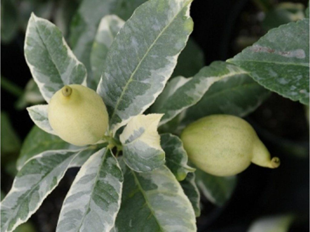Cedrat 'Panache' - eine panaschierte Form der Zitronatzitronen, die sowohl wegen ihrer gestreiften Früchte als auch wegen ihres dekorativen Laubes angebaut wird. Sie stammt aus traditionellen mediterranen Zitruskollektionen, wo Zitronatzitronen seit Jahrhunderten als Zier- und Nutzpflanzen angebaut werden. Unter unseren Bedingungen bildet sie im Behälter einen mittelwüchsigen, immergrünen Strauch oder einen kleineren Baum von etwa 1,5–2 m Höhe und etwa 1–1,5 m Breite. Der Habitus ist eher ausladend, die Äste tragen kurze bis mittellange Dornen. Die Blätter sind ledrig, länglich-eiförmig, mit einem tiefgrünen Grund, der durch cremefarbene bis hellgrüne Flecken und Streifen ergänzt wird, sodass die Pflanze das ganze Jahr über dekorativ wirkt. Die Blütenknospen sind oft rosafarben, die Blüten blühen weiß mit einem leichten Rosaton und einem ausgeprägten Zitrusduft, meist von April bis Juni, bei älteren Pflanzen kann später in der Saison eine schwächere Blütephase folgen. Die Früchte werden normalerweise etwa 10 cm lang und 6 cm breit, sie haben eine glänzende gelbe Schale, die während der Entwicklung deutlich mit grünen bis rosa Streifen oder Flecken gemustert ist. Mit fortschreitender Reifung verfärbt sich die Frucht überwiegend gelb, die Streifen bleiben nur noch schwach angedeutet. Die Schale ist relativ dünn, aber aromatisch, geeignet zum Abrieb und für Marmeladen. Im Inneren befinden sich etwa zehn Segmente gelbes, saftiges Fruchtfleisch mit einer mittleren Anzahl von Kernen, der Geschmack ist deutlich sauer, zitronig. Die Früchte enthalten Vitamin C, Flavonoide und für Zitrusfrüchte typische ätherische Öle, die üblicherweise in der Küche und zur Herstellung von Getränken verwendet werden. In der Praxis werden die Früchte hauptsächlich zum Aromatisieren von Limonaden, Tees, Salaten, Fisch- und Gemüsegerichten oder zur Herstellung von Sirupen und Desserts verwendet. Die Pflanze ist selbstfruchtbar, trägt auch ohne andere Sorten Früchte, die Anwesenheit anderer Zitrusfrüchte fördert jedoch die Aktivität der bestäubenden Insekten.