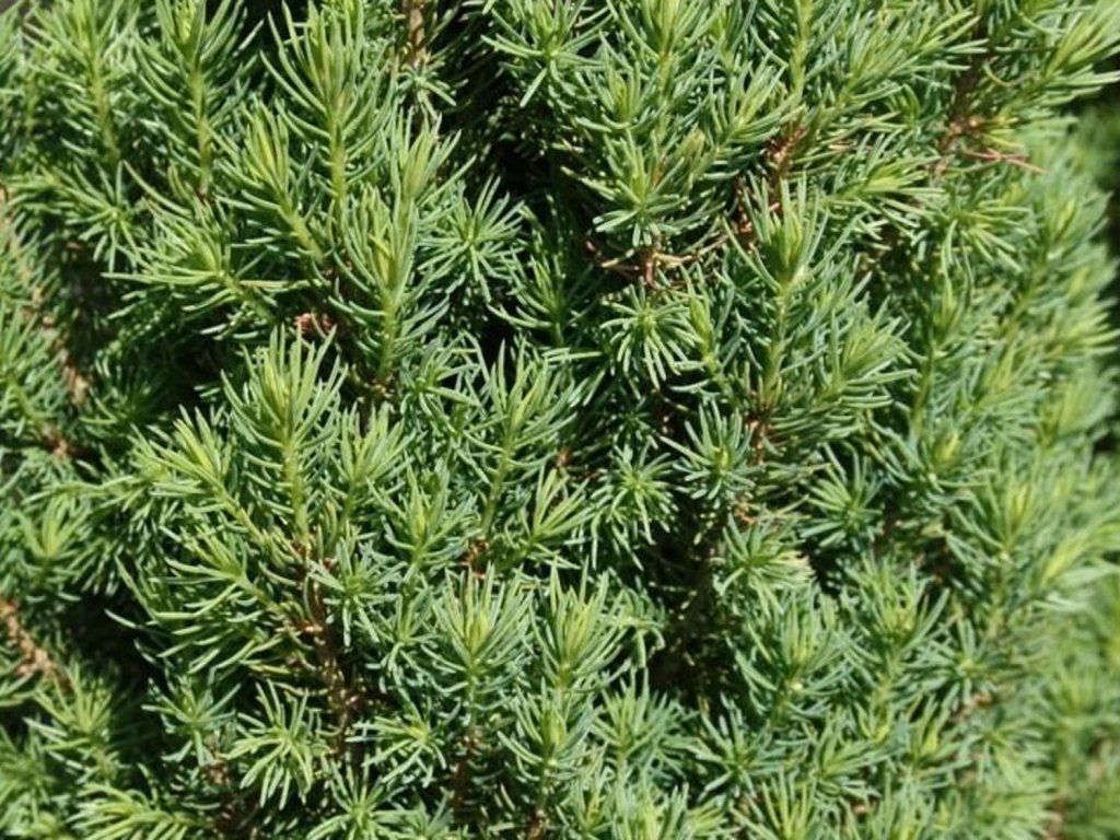 Grau-Fichte 'Zuckerhut' - eine Zwergform der Fichte, die langsam wächst und eine sehr kompakte, eng kegelförmige und dicht verzweigte Krone hat. Die Triebe sind stärker hervorstehend und aufrechter als bei anderen Kultivaren. Die Nadeln sind 6-12 mm lang, satt bis dunkelgrün gefärbt. Sie bildet keine Zapfen. Die jährlichen Zuwächse betragen 3-5 cm. Nach zwanzig Jahren erreicht sie eine Höhe von ca. 1 m und eine Breite von 30-45 cm. Ideal für die Kultivierung im Topf und für Steingärten.