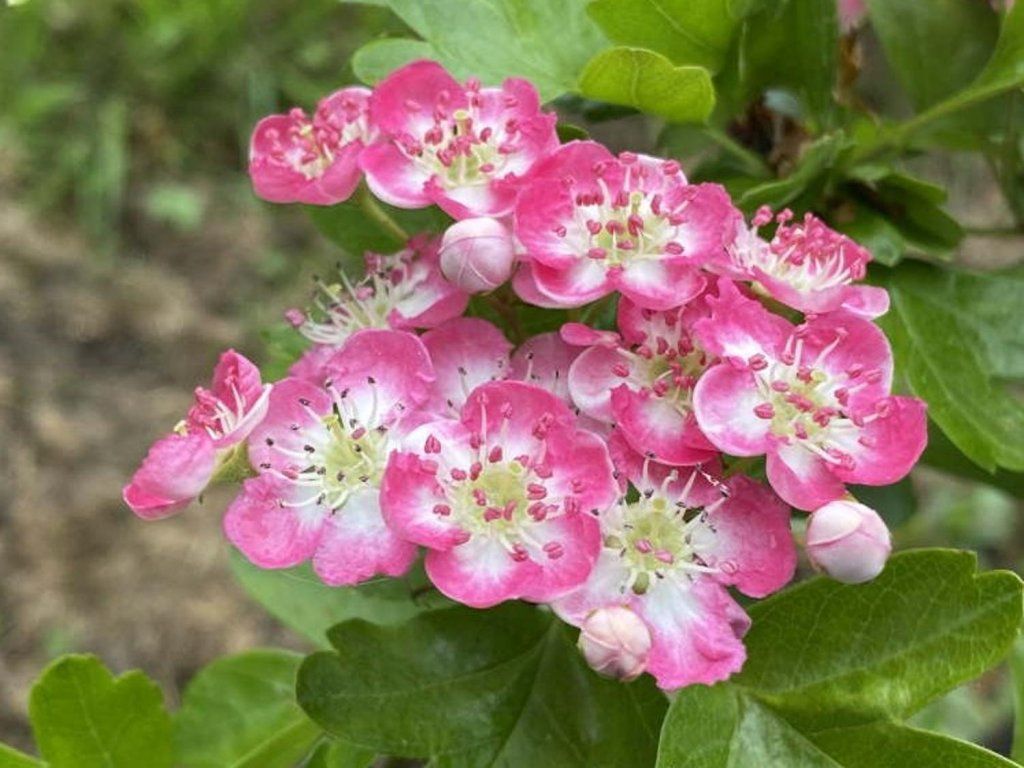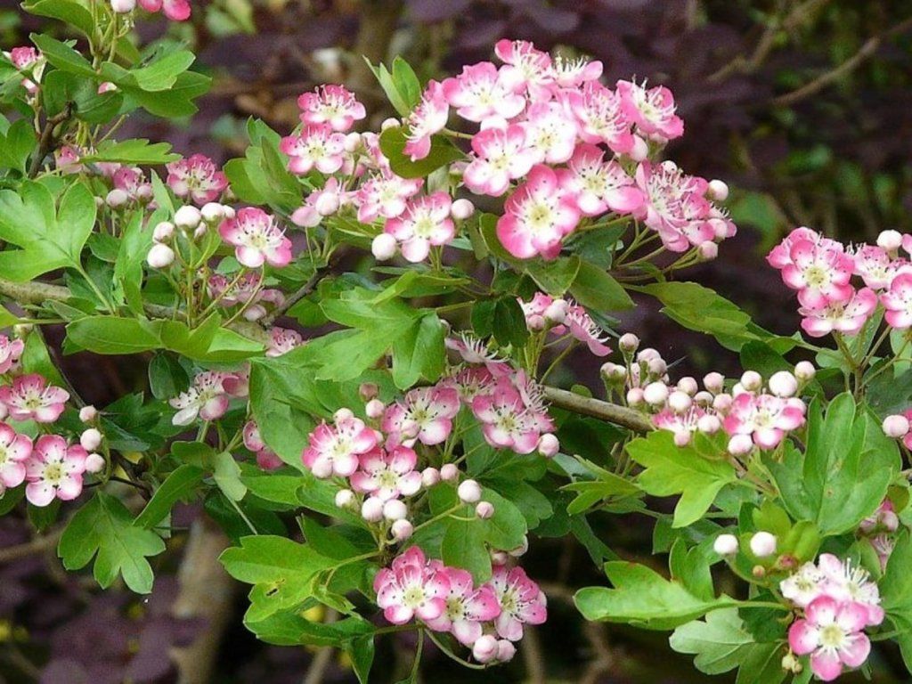 Weißdorn „Princess Sturdza“ – SEin langsam wachsender Strauch, der eine Höhe von 3 bis 3,5 m erreicht. Es ist weit verbreitet und gleichzeitig sehr kompakt. Die Blätter sind oval, zart und leicht gesägt. Im Frühling hellgrün, später dunkelgrün und glänzend. Im Herbst fallen sie nach dem ersten starken Frost ab. Die Blütenstände sind aufrecht und zusammengesetzt. Sie blühen aus purpurvioletten Knospen, sind tiefrosa mit einem weißlichen Zentrum. Sie riecht schwach. Blüht in der ersten Maihälfte. Absolut frostbeständig. Benötigt einen sonnigen Standort.