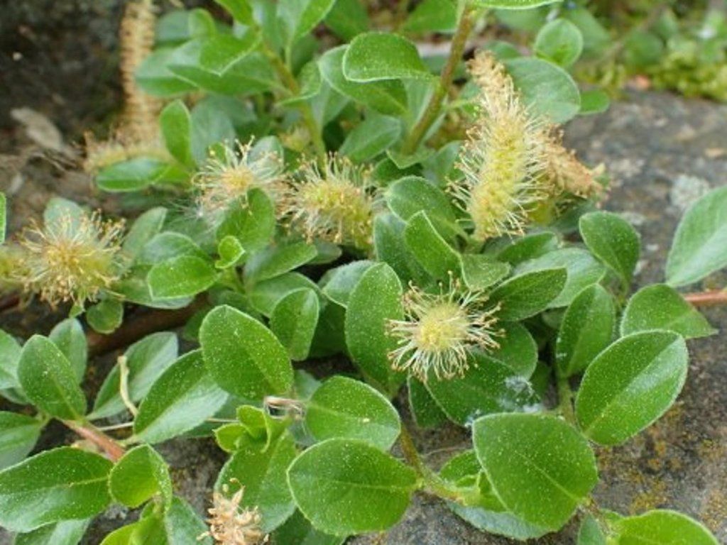 Zwergweide - eine schöne Art von Bodendeckerweide. Die Blätter sind hellgrün, glänzend und oval. Im Herbst verfärben sie sich in Gelbtöne. Sie wächst üppig bis zu einer Höhe von 20-40 cm. Die Rinde ist braun und glatt. Sie blüht im April und Mai mit gelben Kätzchen. Ihr Blütenstand zieht Insekten an und ist die erste Nahrung für Bienen. Diese Art eignet sich für die Kultivierung in Steingärten und Trögen, für Heidegärten und an Wasserstellen.